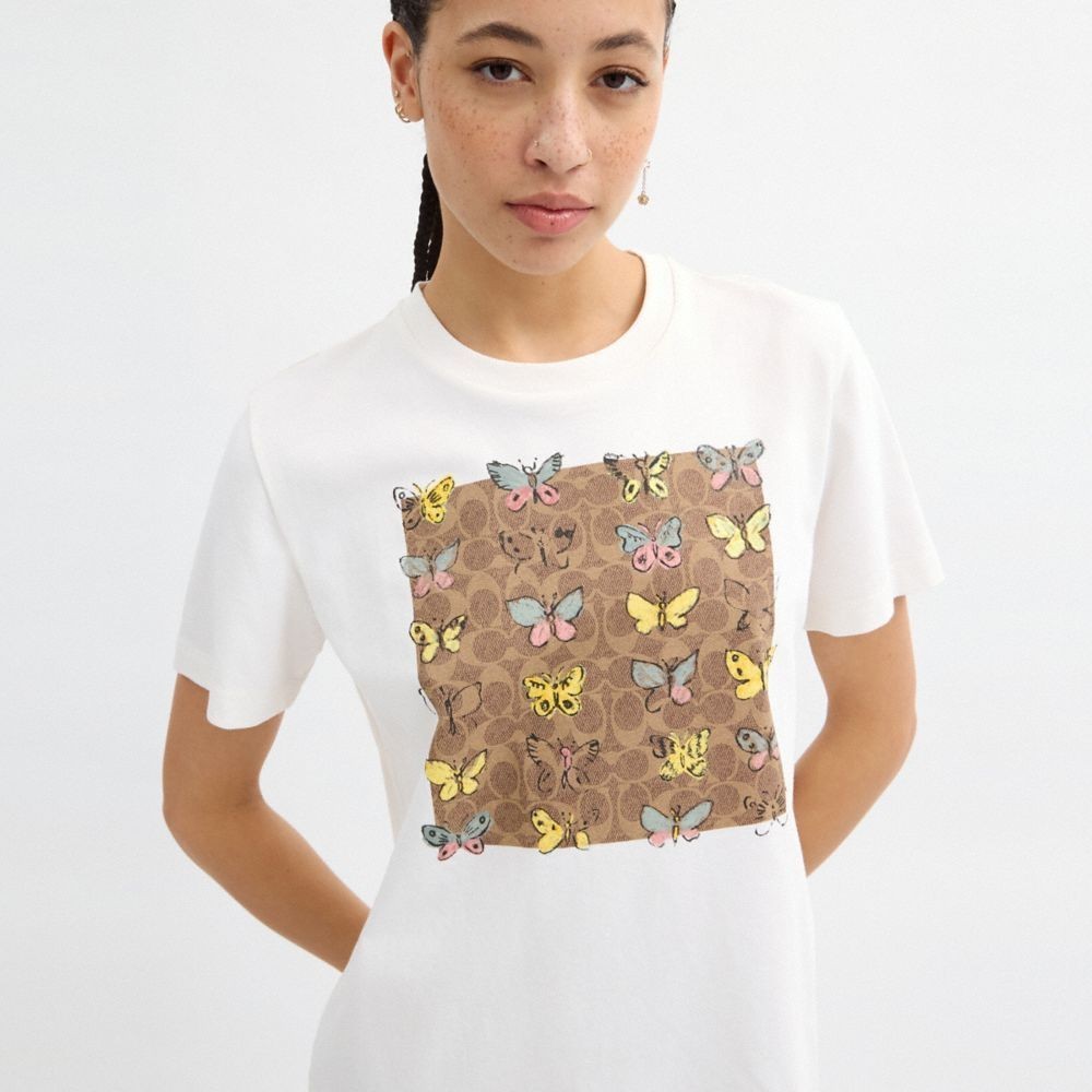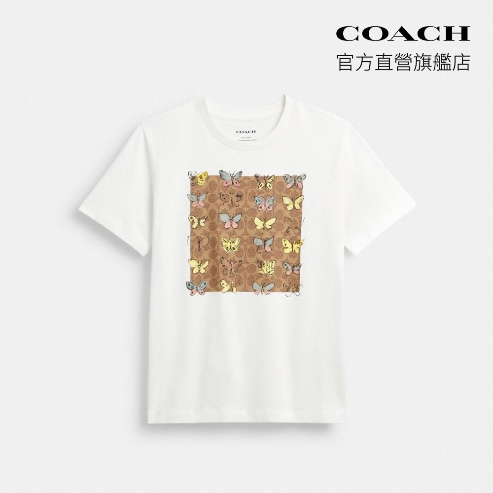 【COACH】棉質蝴蝶經典Logo方形圖案經典T恤-白色(CAH77)|官方直營白色,XXS|白色,XS|白色,S|白色,M|白色,L|白色,XLT-shirtsCOACH官方旗艦店