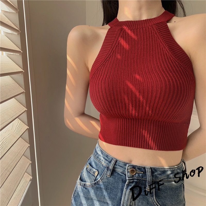 【DIFF】韓版削肩無袖緊身針織短版背心 上衣 小可愛 女裝 衣服 短版上衣 短板上衣 運動背心 運動上衣【V288】【V288】酒紅|【V288】灰色|【V288】粉色|【V288】黑色|【V288】白色Tanks & CamisolesDiFF shop