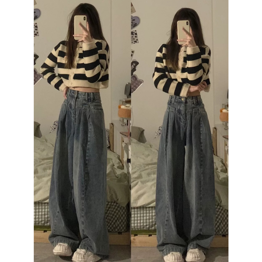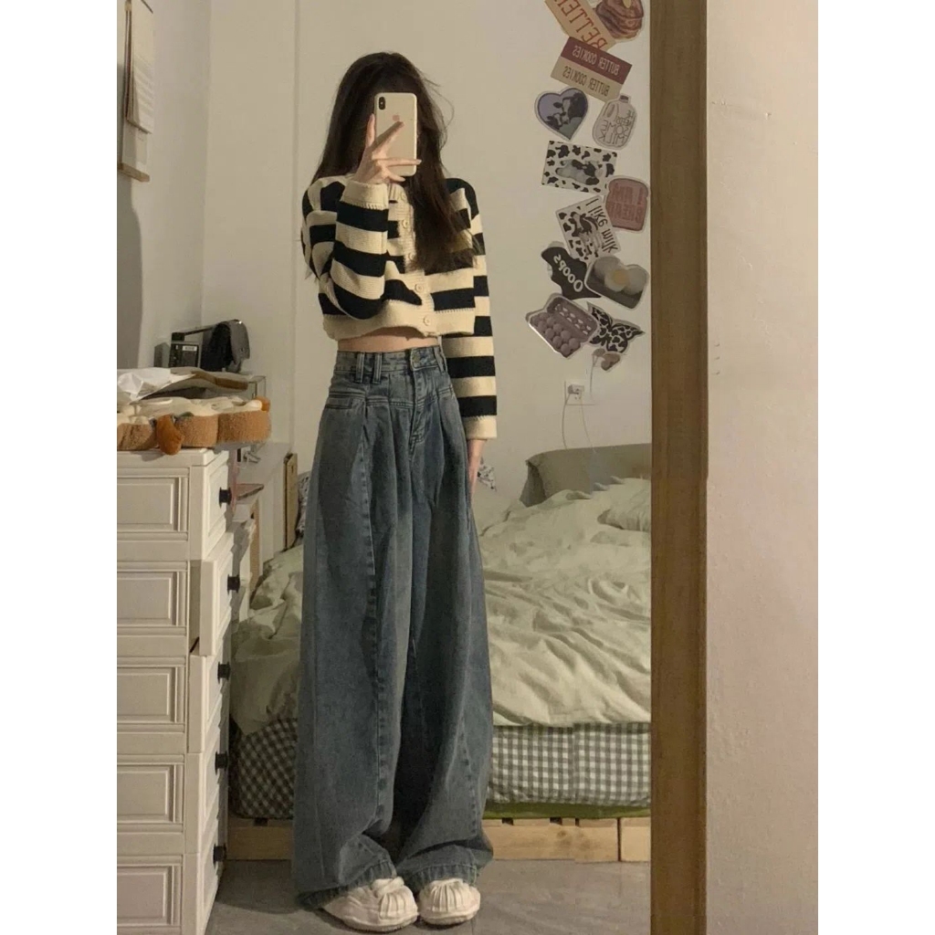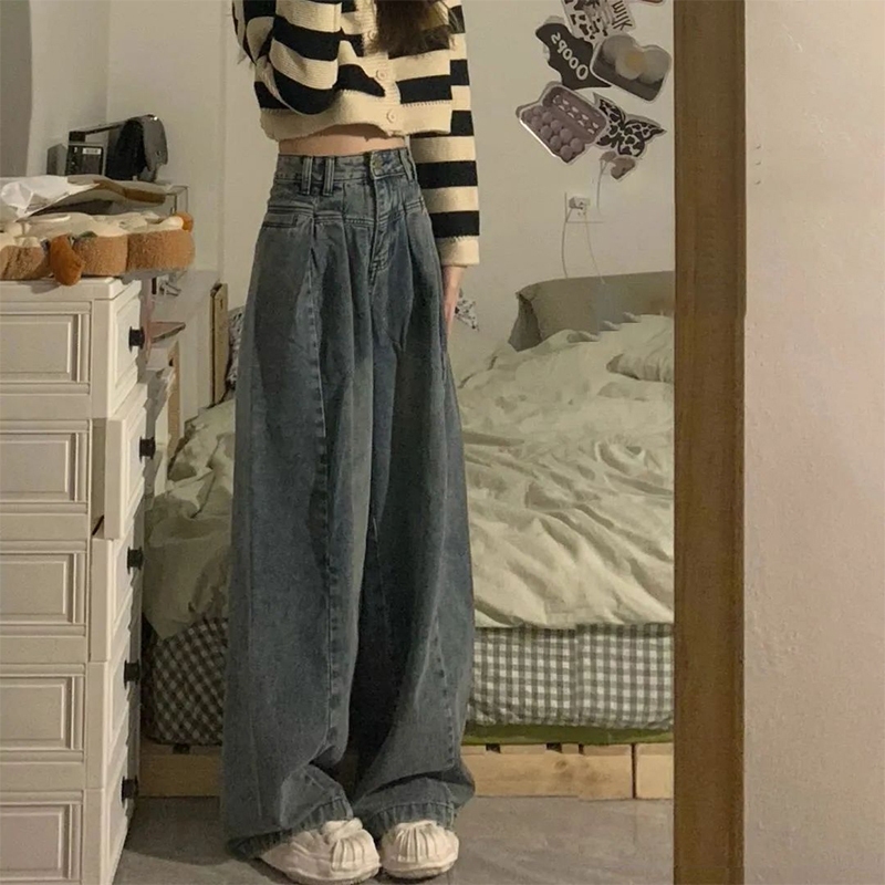 無敵好穿推薦入 牛仔褲 闊腿褲 踩底褲 長褲 寬鬆牛仔褲 韓版牛仔褲 直筒褲 褲子女 高腰拖地褲 設計感 高腰褲 寬褲女圖片色,M|圖片色,S|圖片色,LCHAOO 台北原創服飾品牌