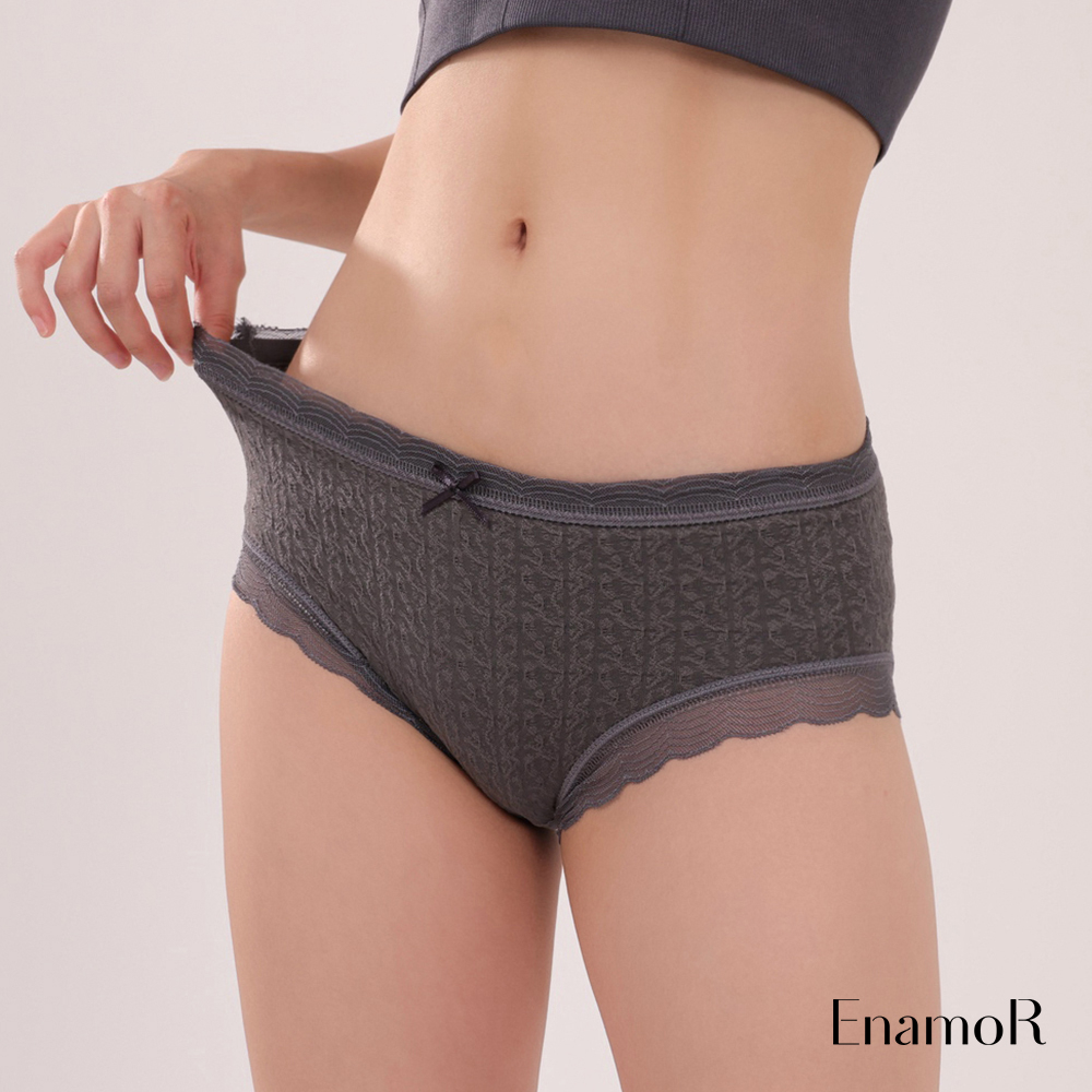 【EnamoR】法式奶油泡芙抓皺蕾絲內褲【中腰】/舒適 柔軟 蝴蝶結 日系穿搭 百搭 女生內褲 牛仔褲 洋裝 睡衣 收納葡萄歐蕾,F|黑巧可可,F|起司奶蓋,FPantiesEnamoR恩娜茉兒-官方旗艦店