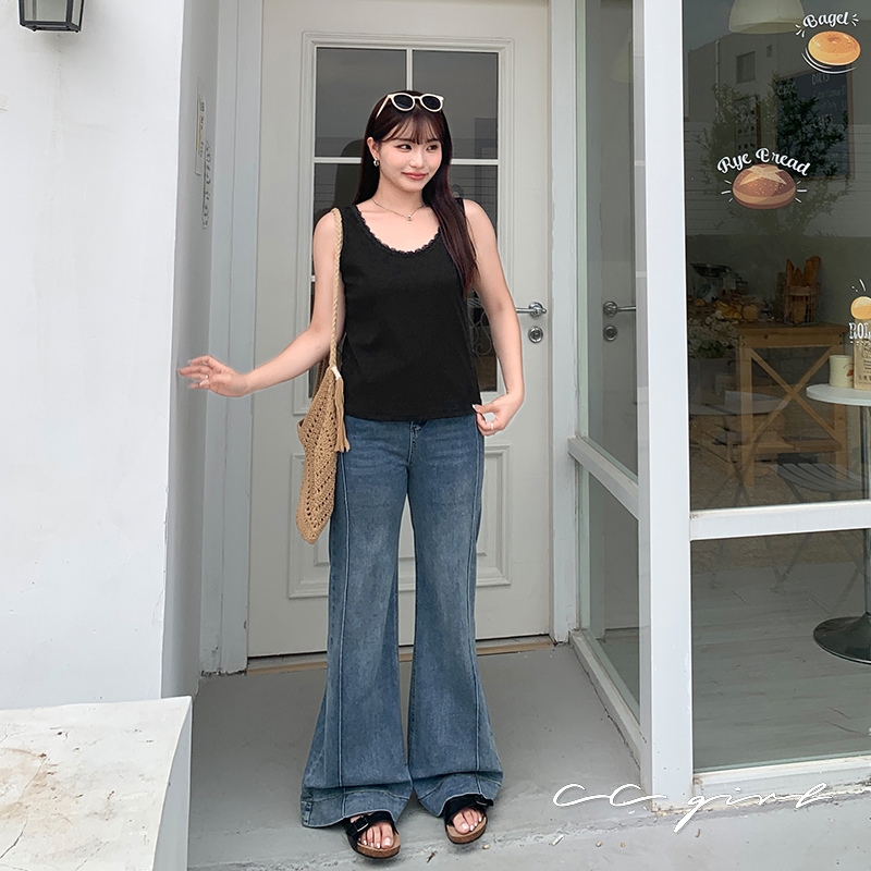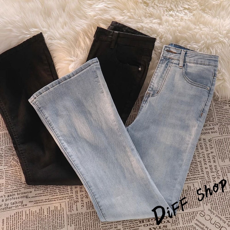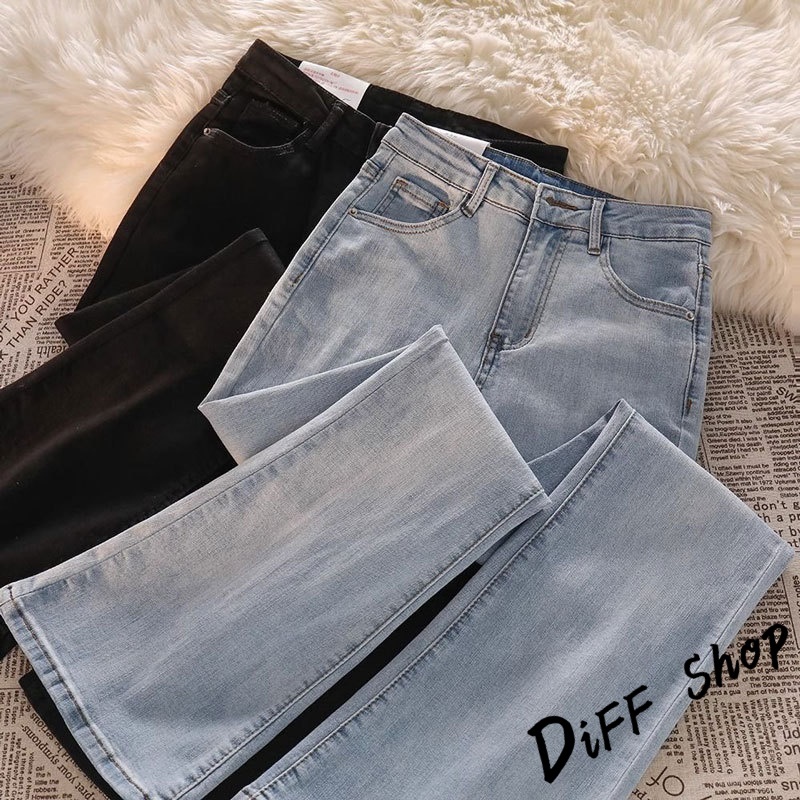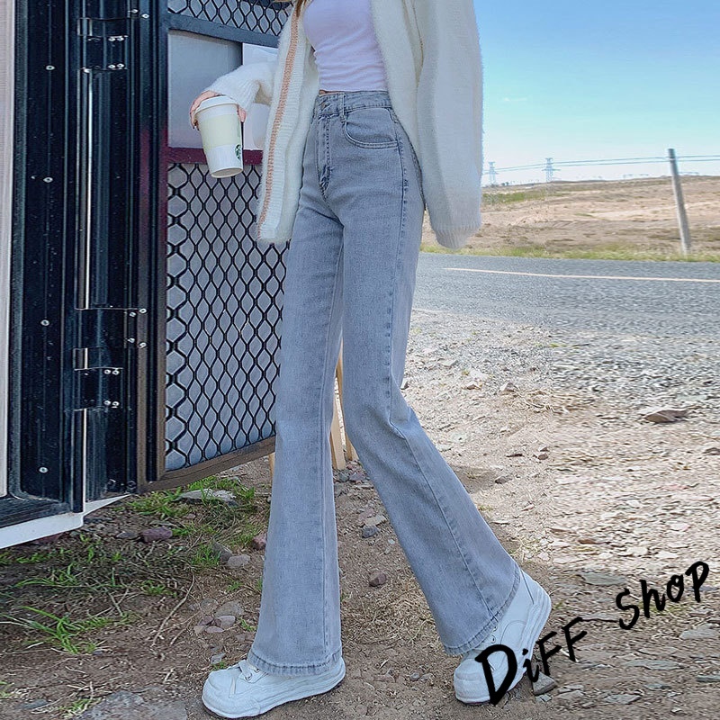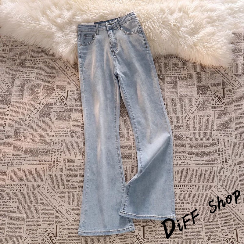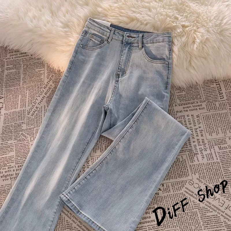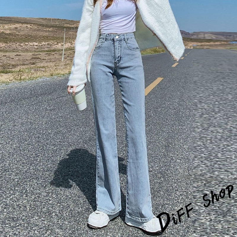 【DIFF】韓版高腰顯瘦淺色微喇叭牛仔褲 牛仔寬褲 褲子 長褲 休閒褲 女裝 高腰褲 拖地褲 直筒褲 【P365】【P365】淺藍M號|【P365】淺藍L號|【P365】淺藍XL號DiFF shop