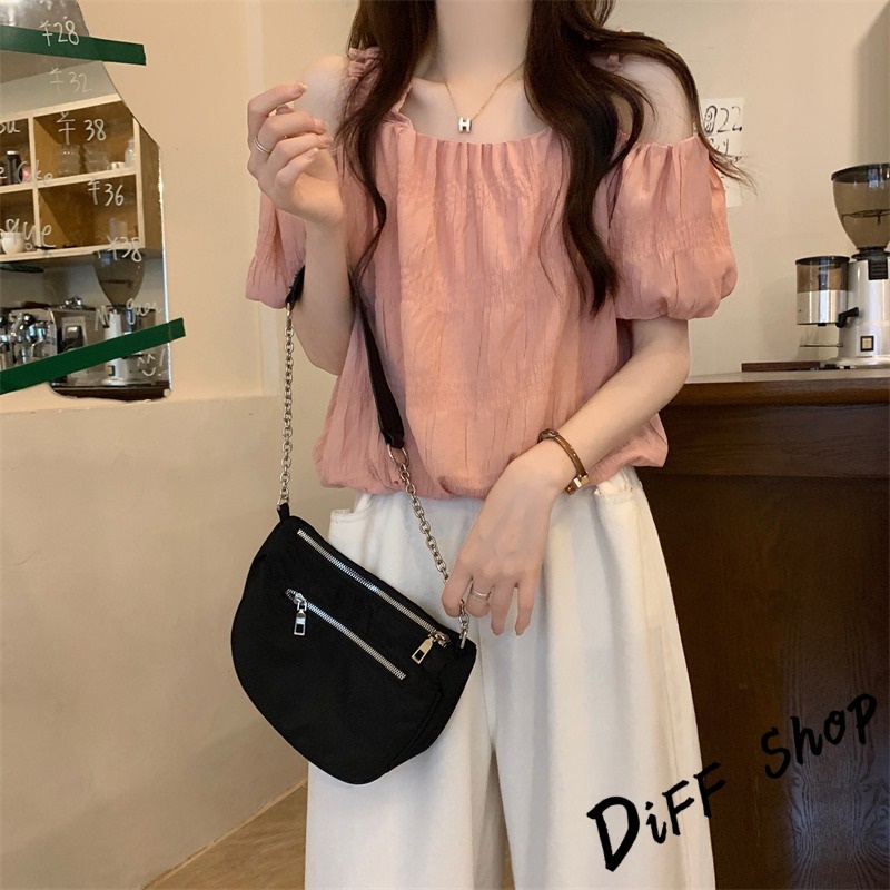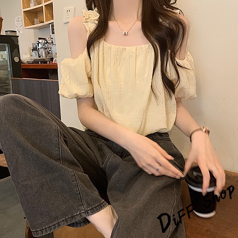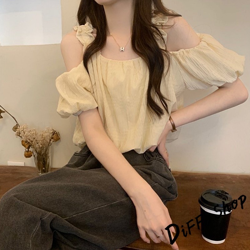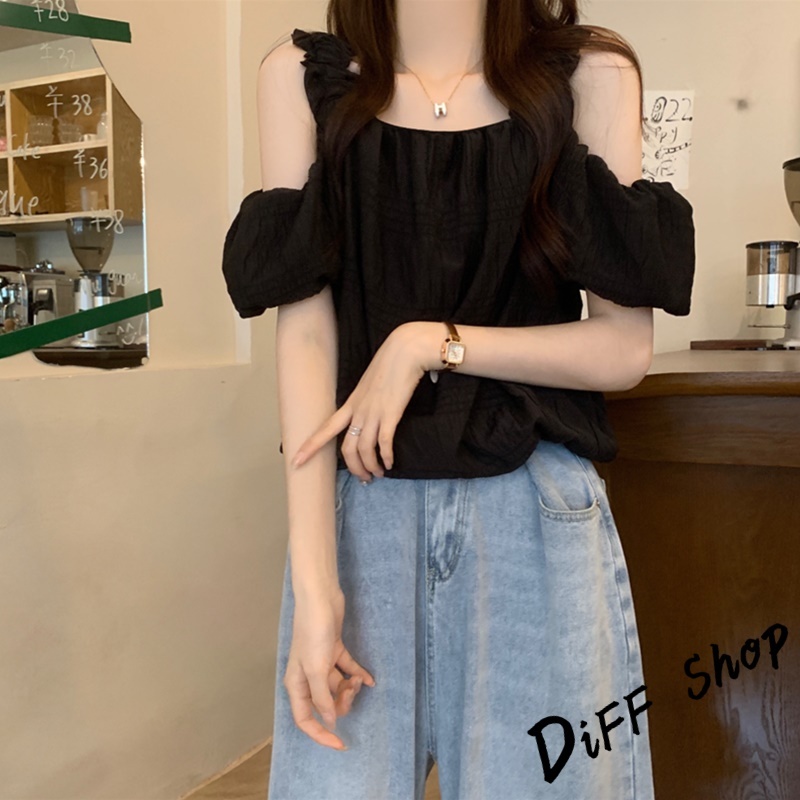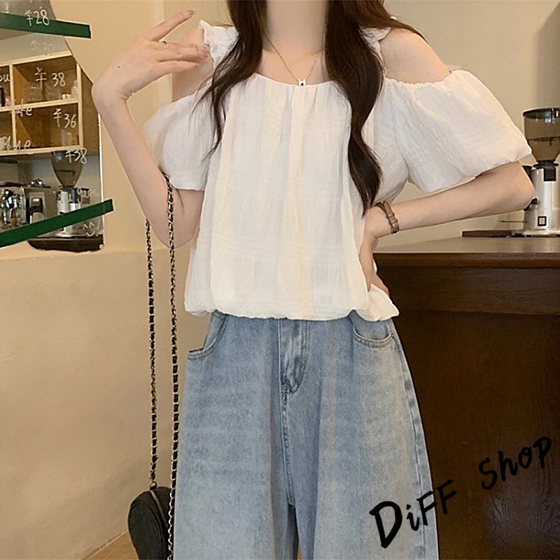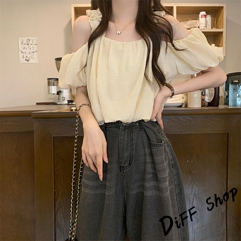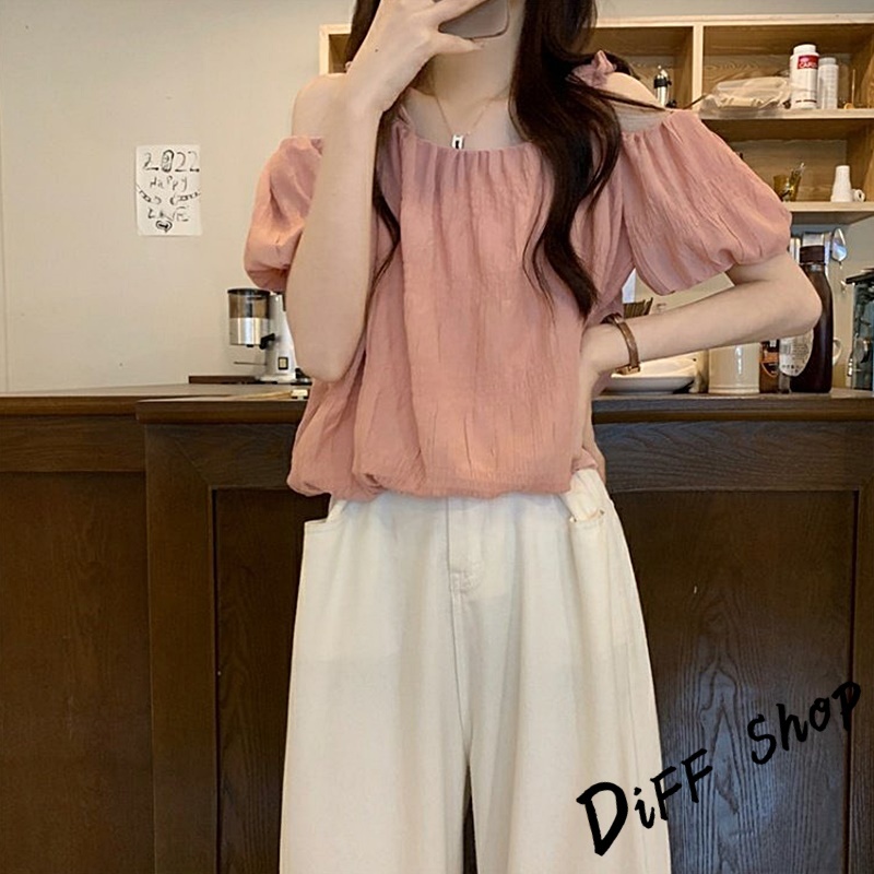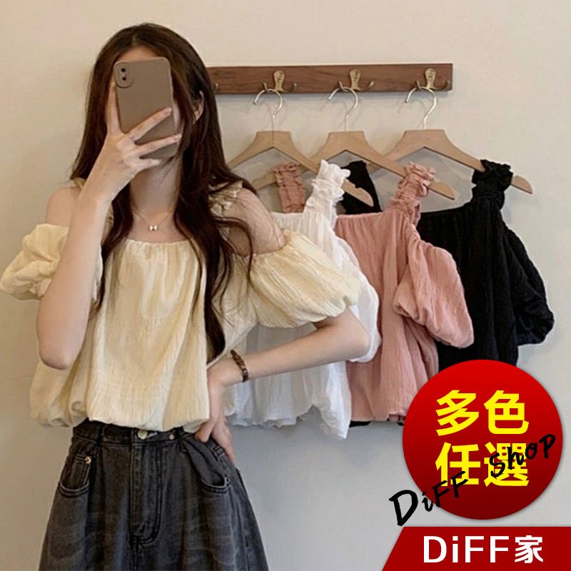 【DIFF】韓版氣質設計感法式露肩上衣 短袖上衣 短版上衣 衣服 夏天女裝 短版t恤 女裝 短袖t恤女【T661】【T661】杏色|【T661】白色|【T661】粉色|【T661】黑色Shirts & BlousesDiFF shop