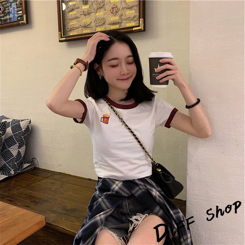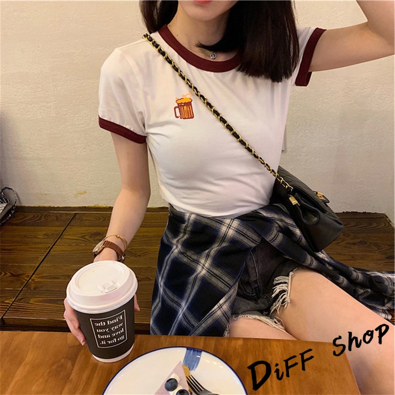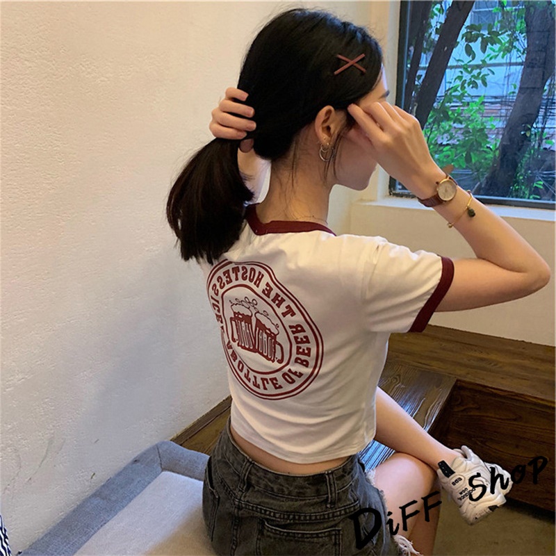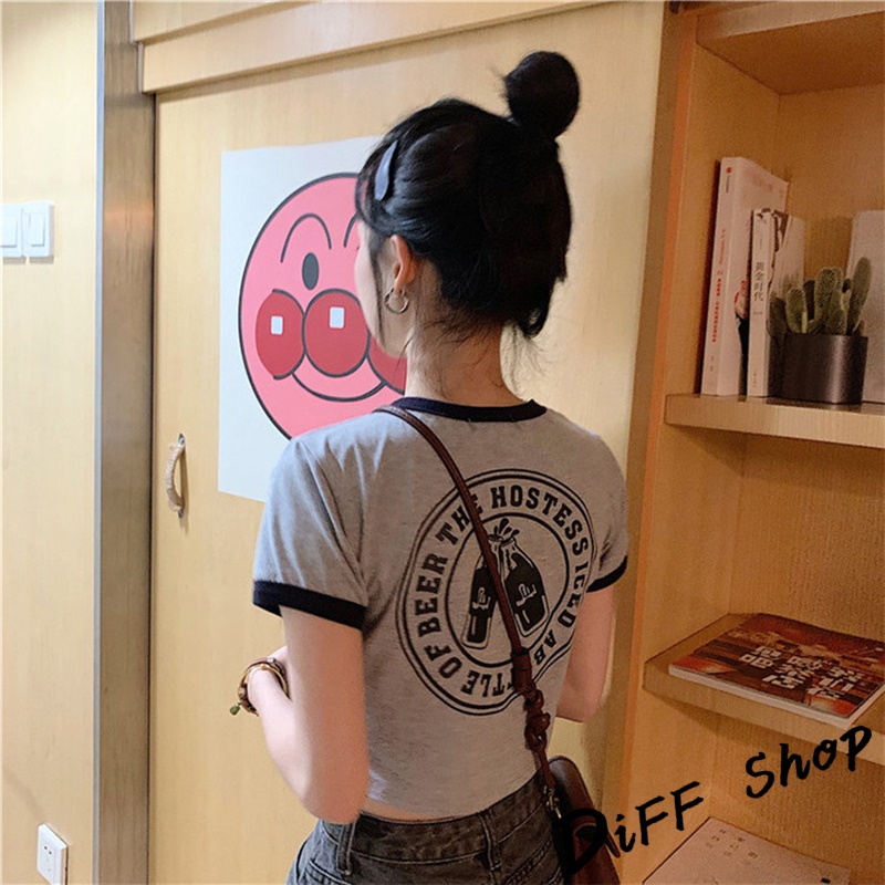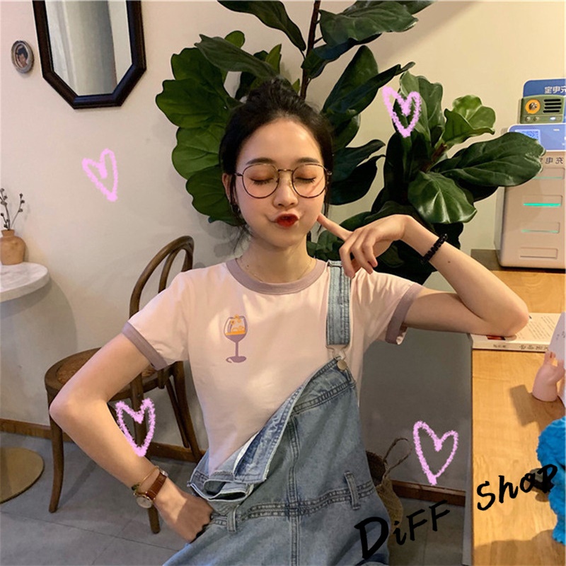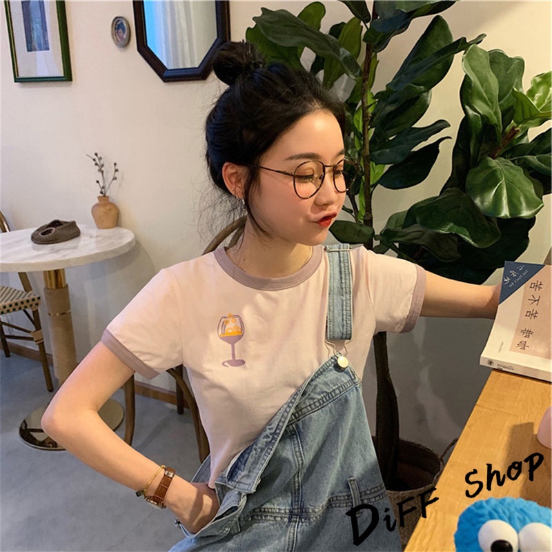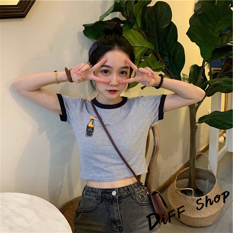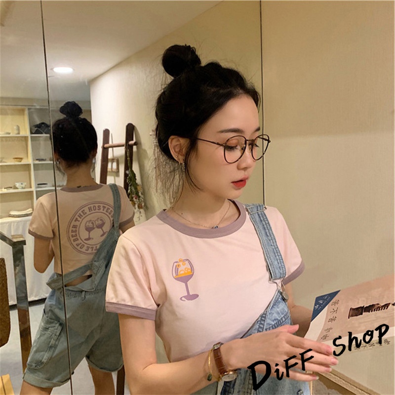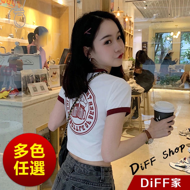 【DIFF】韓版前後印花拼接短版上衣短袖上衣 短袖t恤 女裝 顯瘦上衣 衣服女 寬鬆上衣 短板上衣【T373】【T373】粉色|【T373】灰色|【T373】白色T-shirtsDiFF shop
