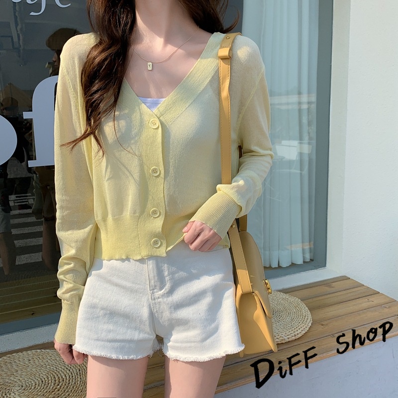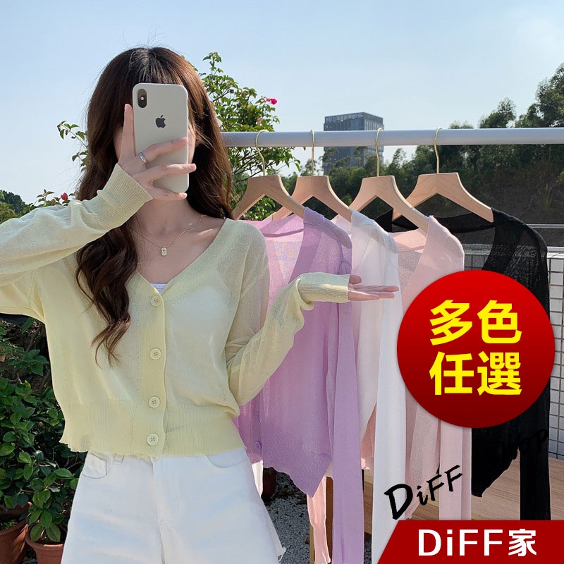 【DIFF】韓版冰絲針織防曬外套 短版上衣 上衣 女裝 衣服 外套 薄外套 罩衫 防曬外套 長袖上衣【J199】【J199】黃色|【J199】紫色|【J199】黑色|【J199】粉紅色|【J199】白色DiFF shop