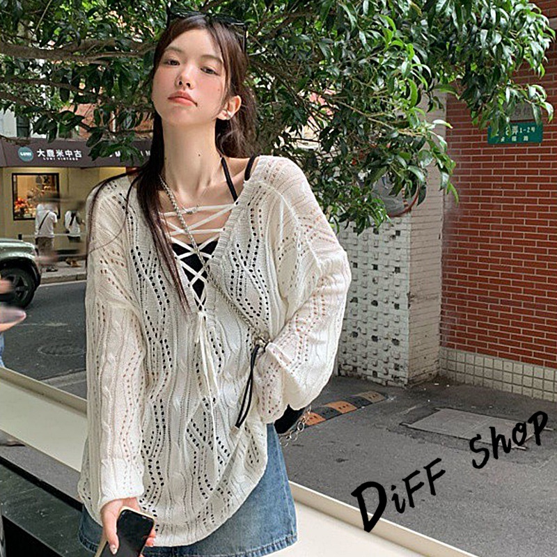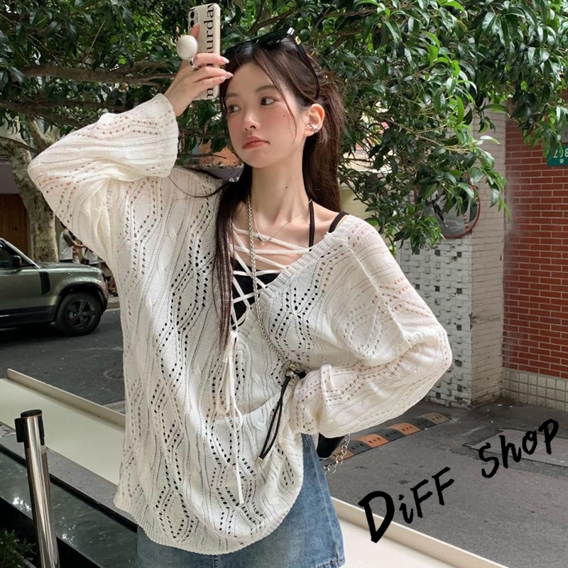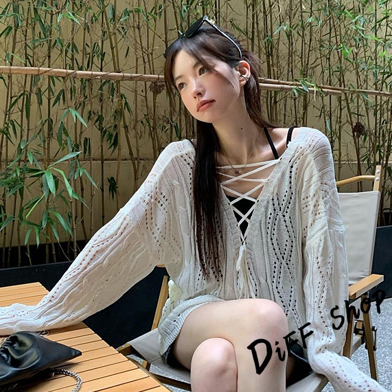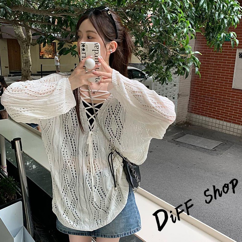 【DIFF】韓版鏤空露背防曬針織上衣 防曬上衣 上衣 女裝 衣服 外套 薄外套 罩衫 防曬外套 長袖上衣【W509】【W509】白色DiFF shop