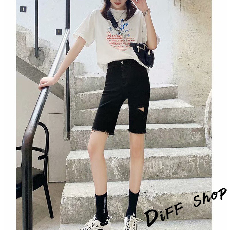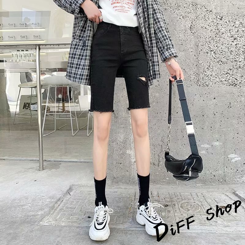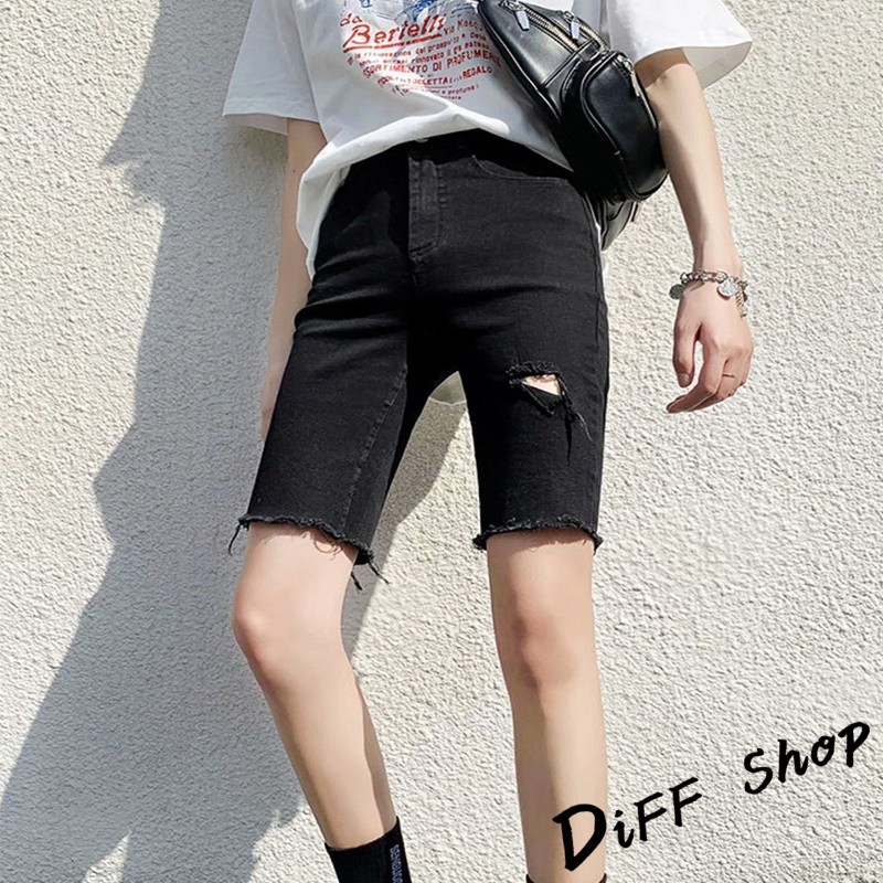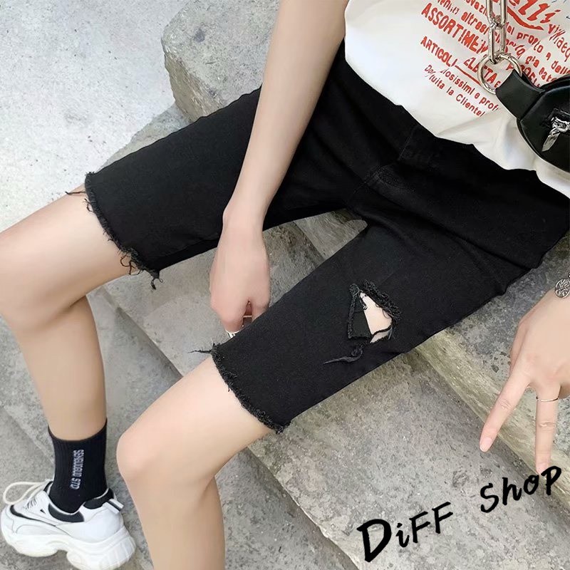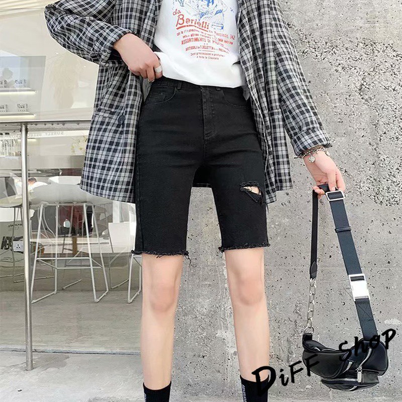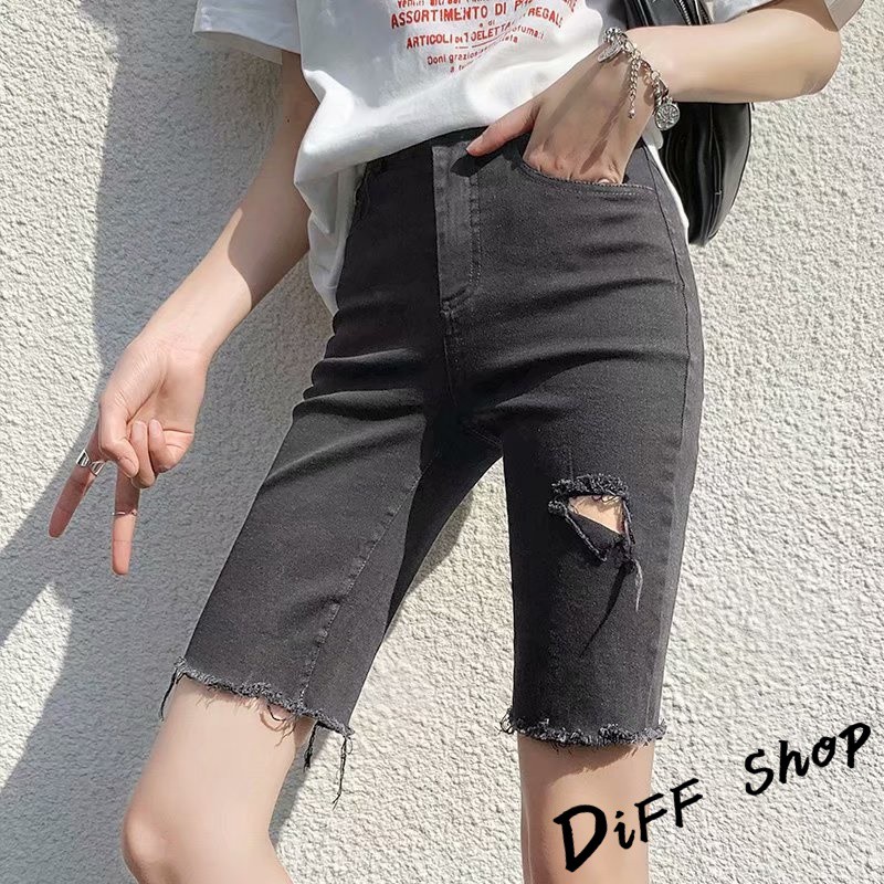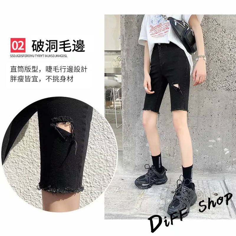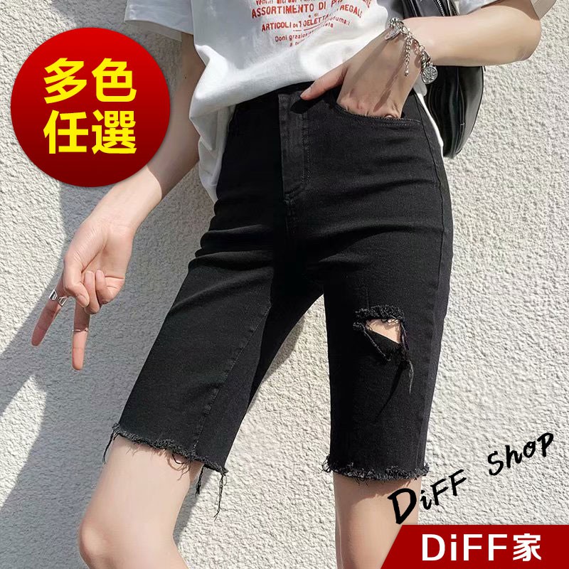 【DIFF】韓版彈性緊身破洞黑色直筒短褲 牛仔褲 五分褲 褲子 女裝 牛仔短褲【P156】【P156】黑色L號|【P156】黑色XL號|【P156】灰色M號|【P156】灰色L號|【P156】灰色XL號|【P156】黑色M號ShortsDiFF shop