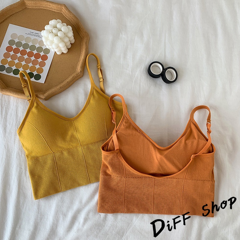 【DIFF】韓版美背舒適零束縛運動背心 免穿內衣帶胸墊 上衣 小可愛 女裝 背心女 衣服 冰絲背心 短版上衣【V145】【V145】黑色|【V145】白色|【V145】姜黃|【V145】橘色|【V145】墨綠|【V145】深灰Tanks & CamisolesDiFF shop
