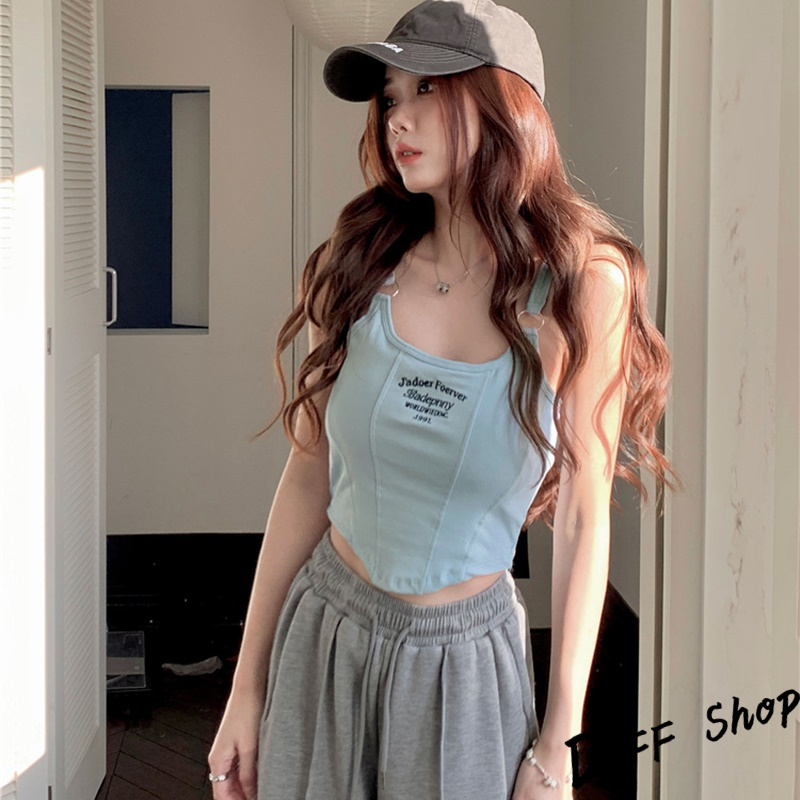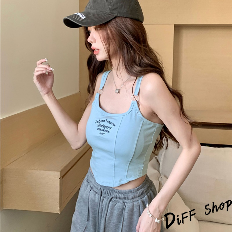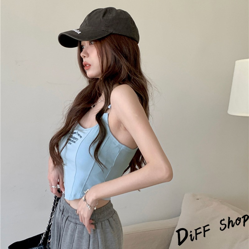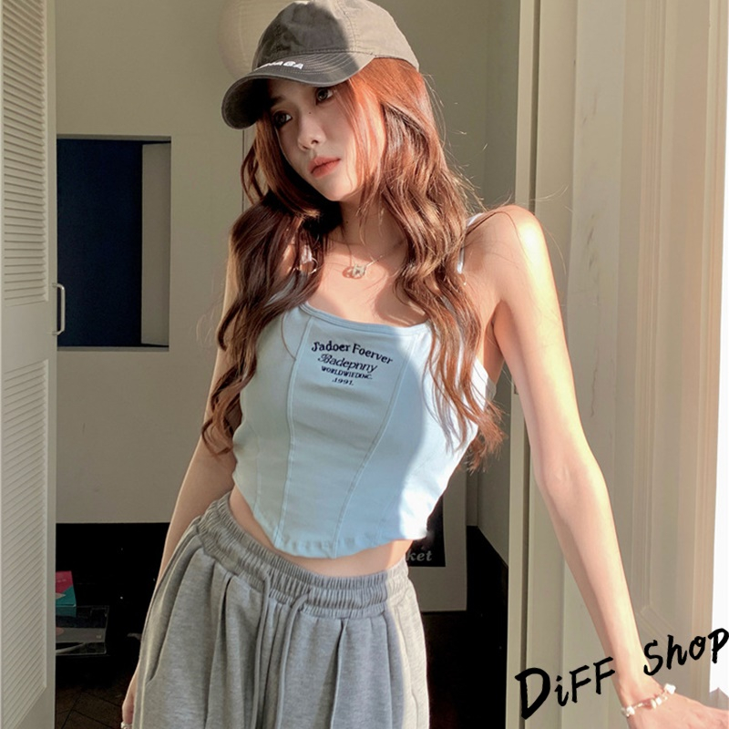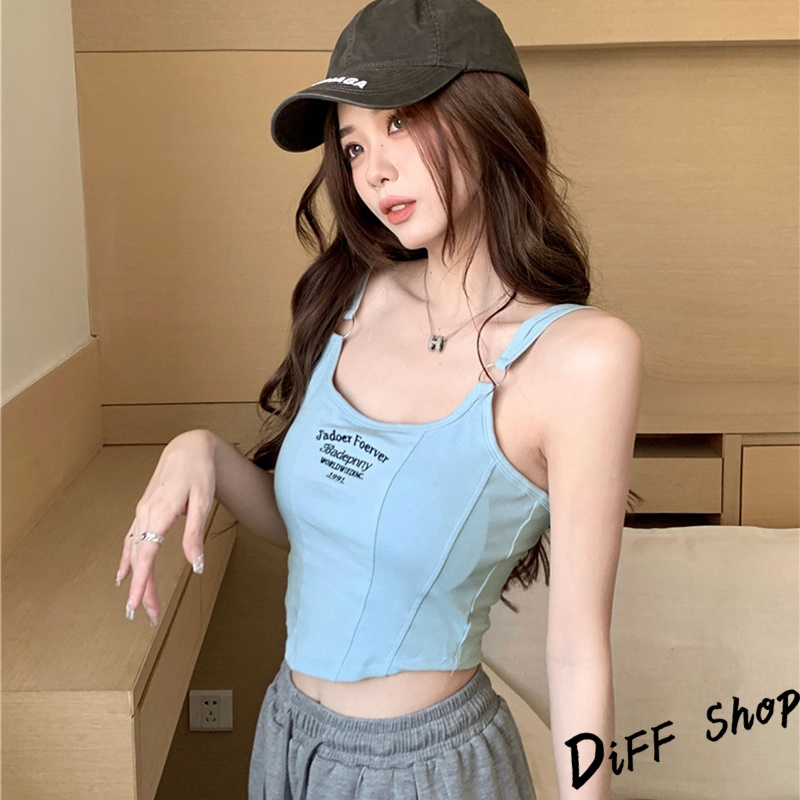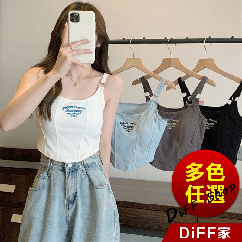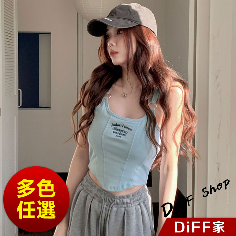 【DIFF】韓版顯瘦美背字母短版背心 帶胸墊免穿內衣 上衣 小可愛 女裝 衣服 短版上衣 運動背心 運動上衣【V307】【V307】白色|【V307】黑色|【V307】深灰|【V307】淺藍Tanks & CamisolesDiFF shop