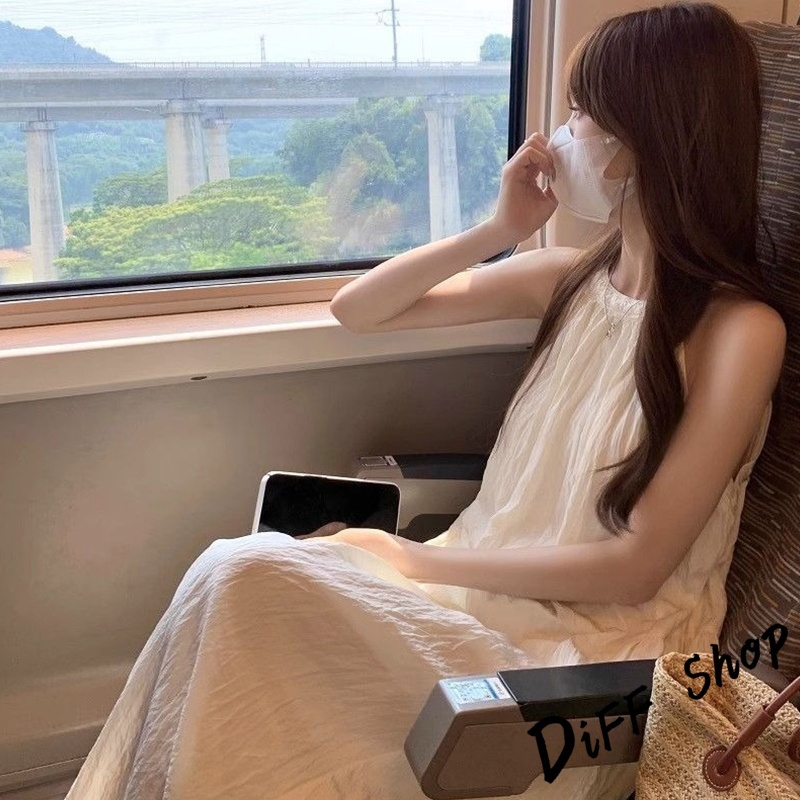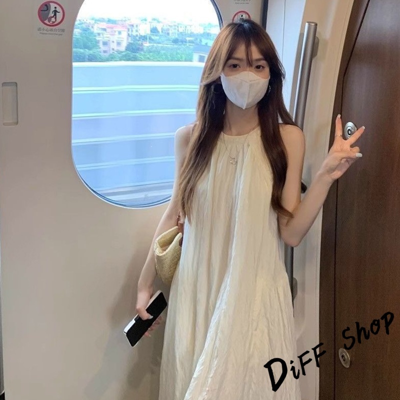 【DIFF】韓版氣質寬鬆海邊度假風洋裝 背心 連身裙 上衣 套裝 短袖上衣 夏天女裝 裙裝 長裙 裙子【S361】【S361】杏色DiFF shop