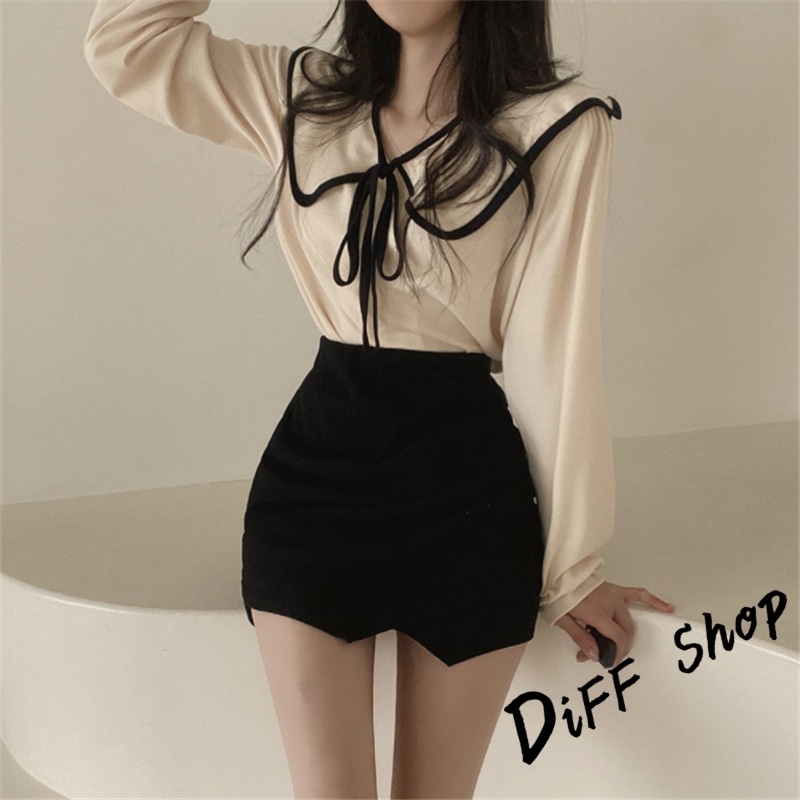【DIFF】韓版法式氣質大翻領設計感長袖襯衫 長袖上衣 女裝 衣服 長袖t恤 保暖上衣 冬天女裝 秋冬女裝【W406】【W406】黑色|【W406】白色|【W406】杏色Shirts & BlousesDiFF shop