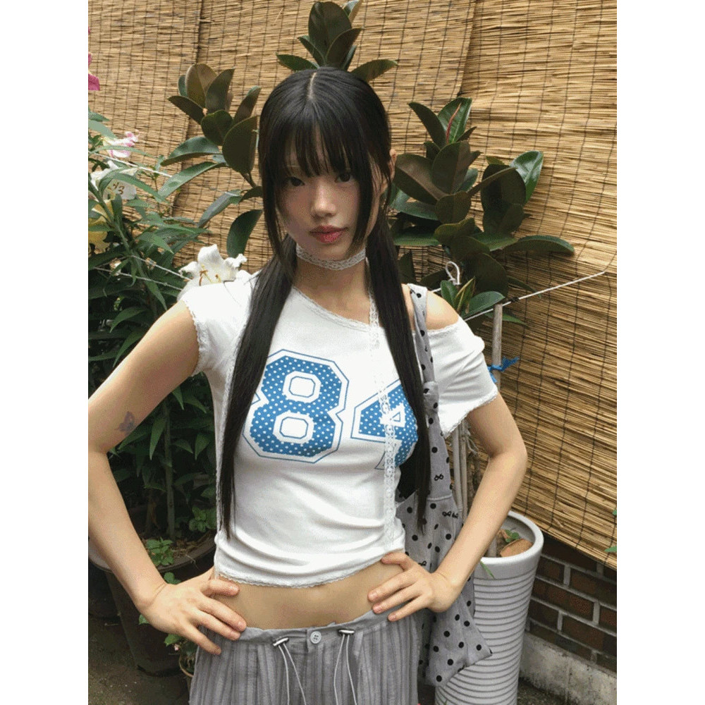 Codibook|韓國 wonderwonder 圓點印花蕾絲露肩短袖T恤[預購]短袖上衣 T恤 女裝白色,FREET-shirtsCodibook 韓國女裝購物平台