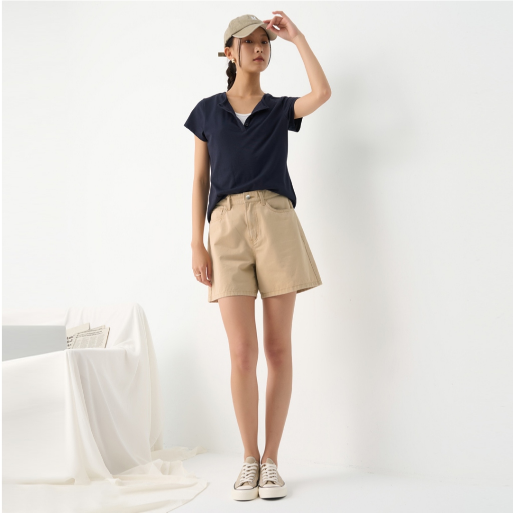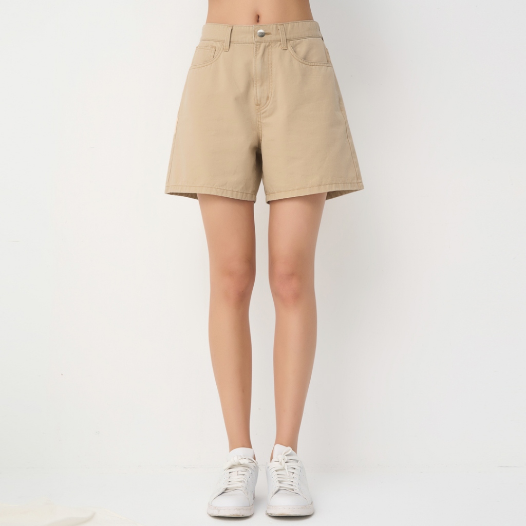 【ERSS】女裝 休閒短褲 休閒褲 A字短褲 寬直筒 純棉 無彈 中腰 卡其色【S20136】S|M|L|XL|3LShortsE.R.S.S.
