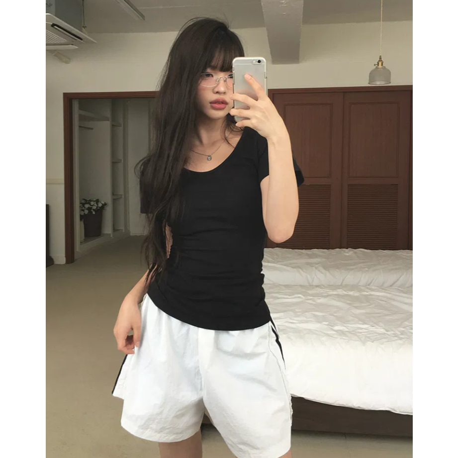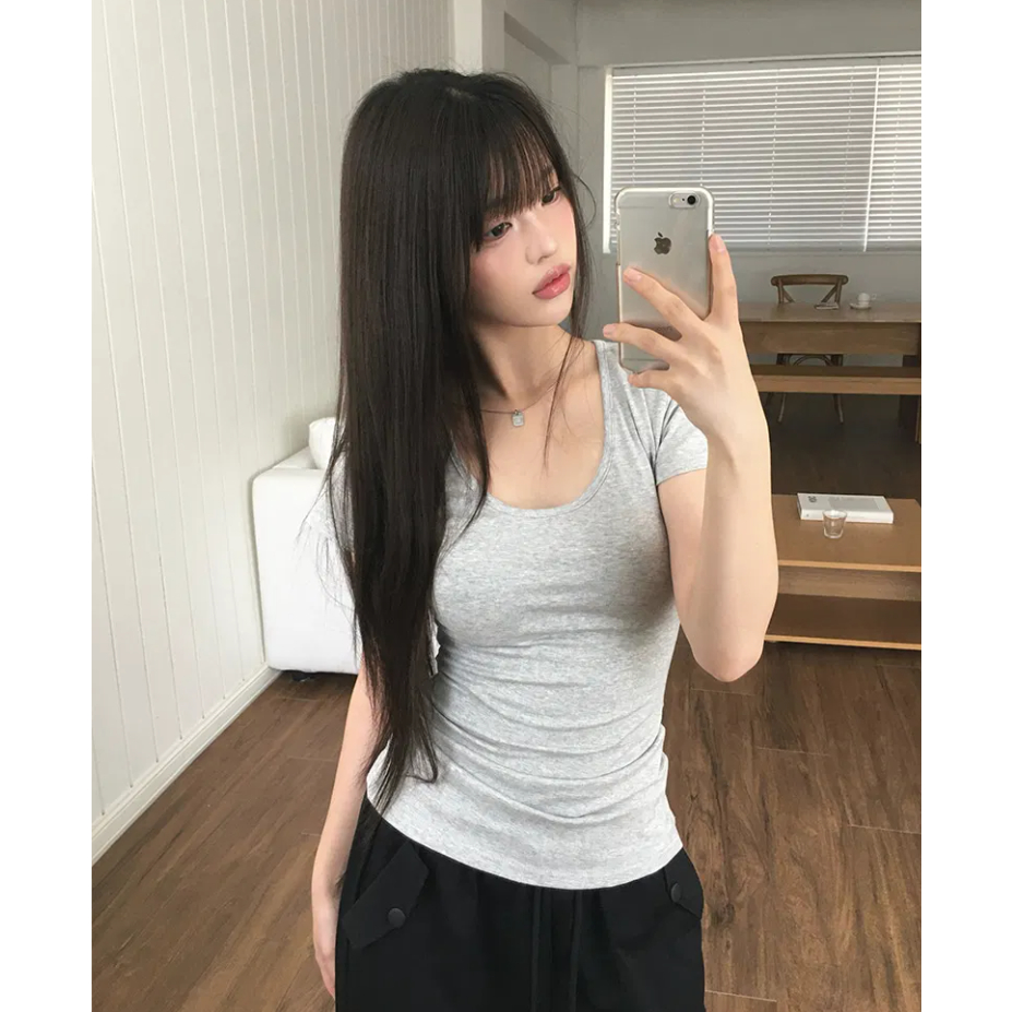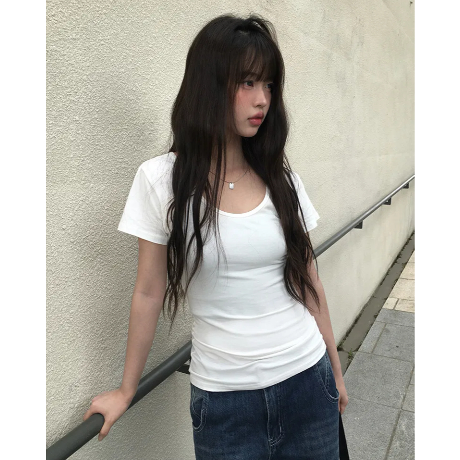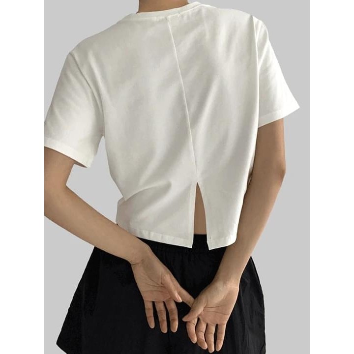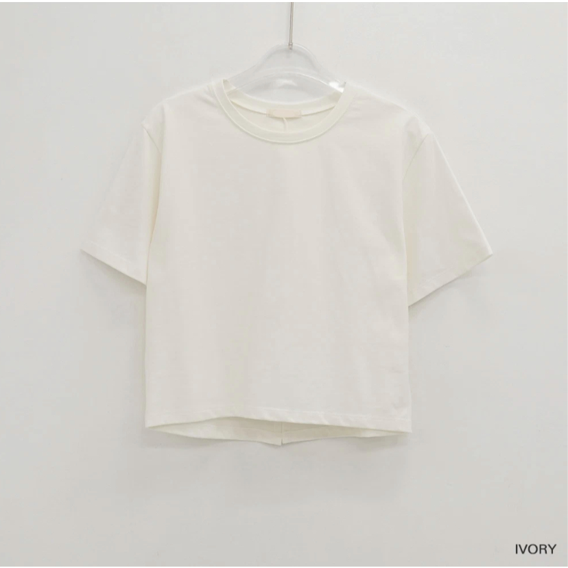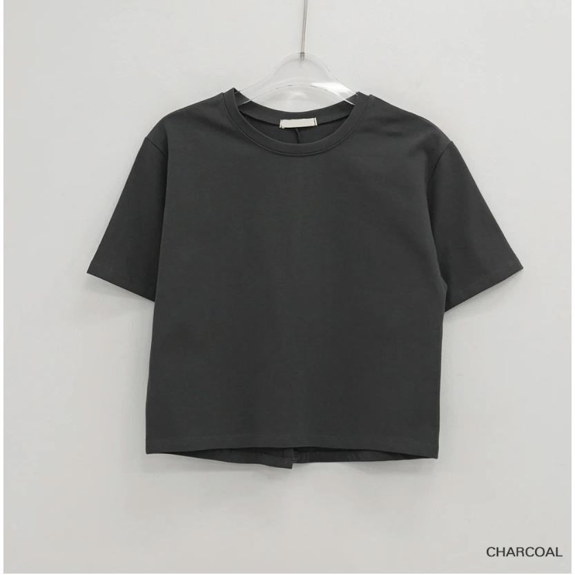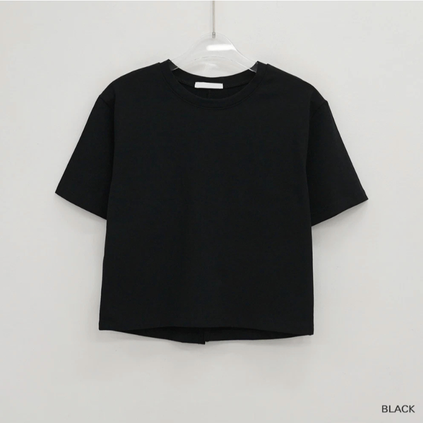Codibook|韓國 MAENIQUE 圓領小開叉棉質短袖上衣[預購]短袖上衣 T恤 女裝黑色|象牙白|Light sky(淺藍)|深灰色T-shirtsCodibook 韓國女裝購物平台