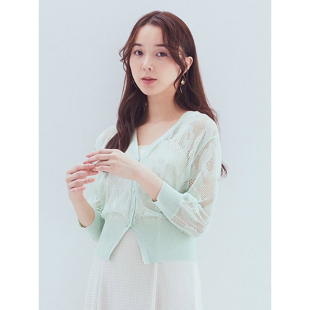 earth music&ecology 透明感花卉圖案V領七分袖罩衫(1M42L2D0400)象牙色F|黑色F|粉紅色F|薄荷綠F|淡紫色FJacketsearth music&ecology Select Store