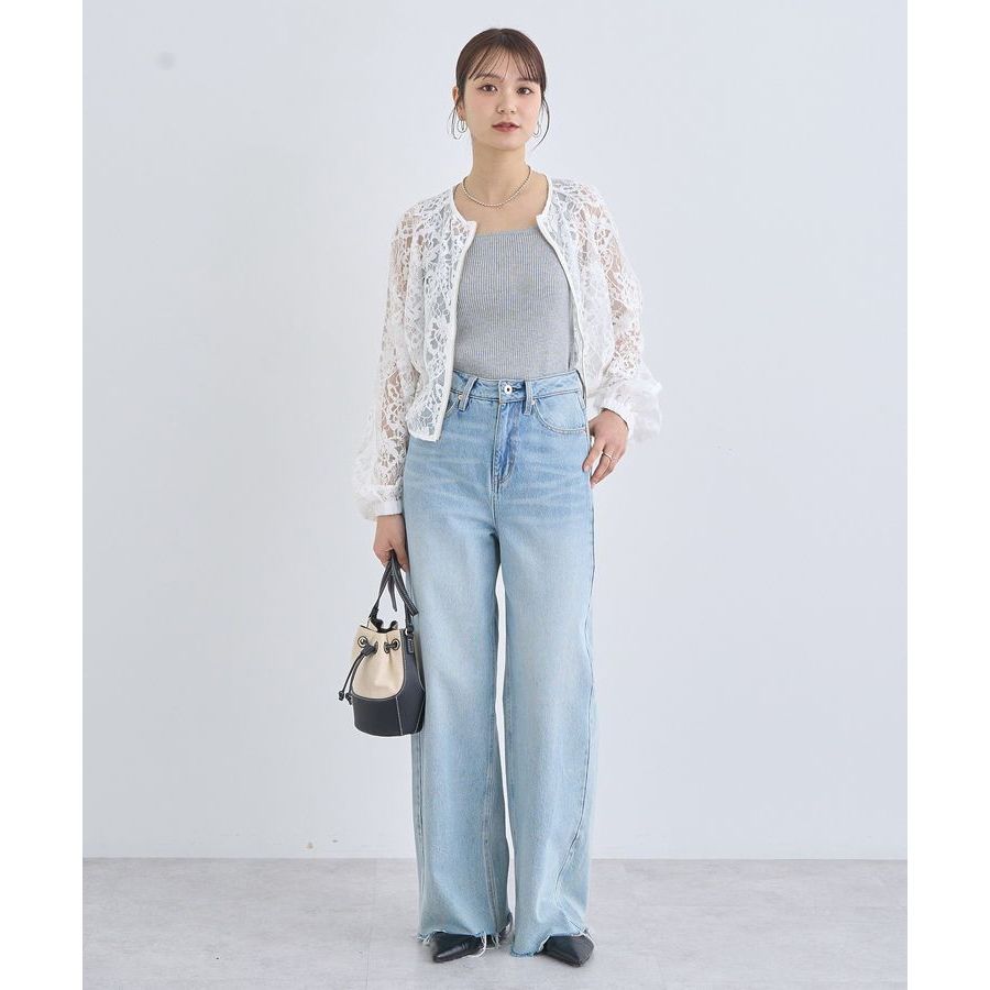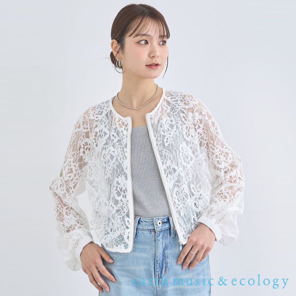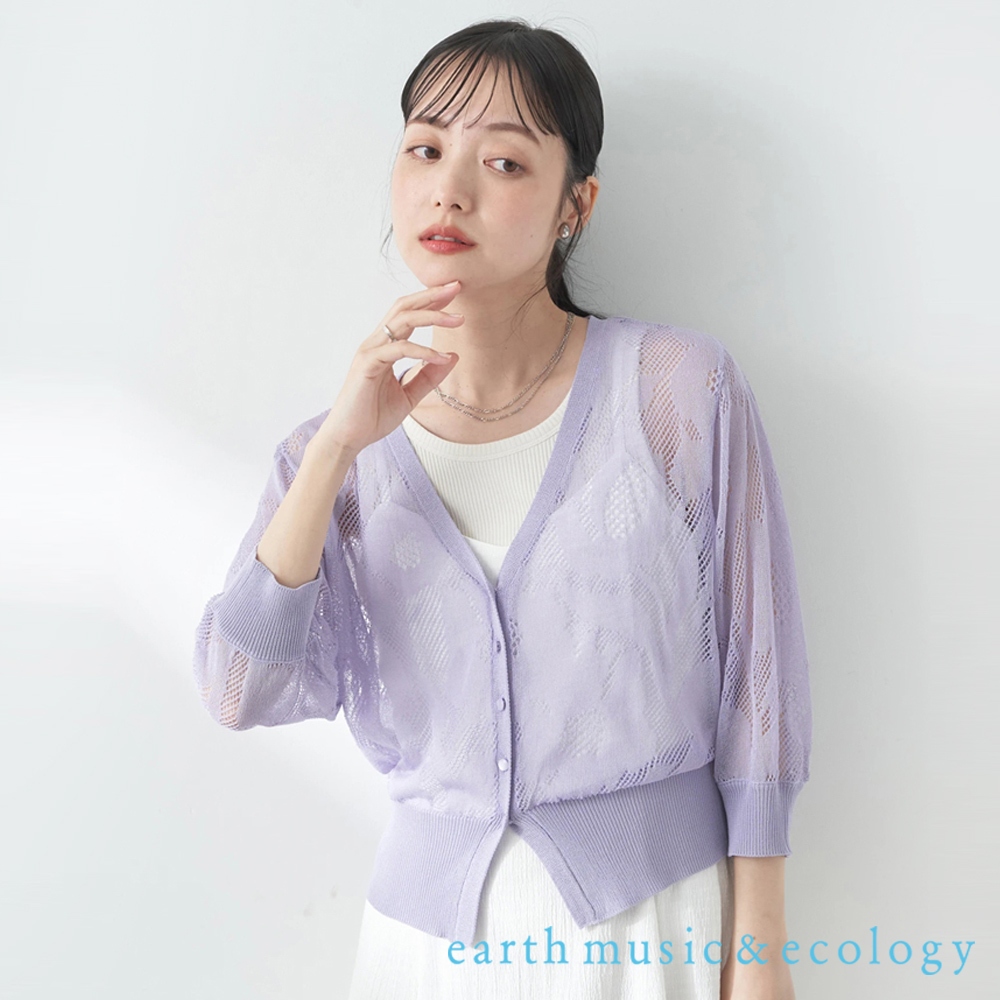 earth music&ecology 鏤空透膚蕾絲中短版拉鍊外套/上衣(01000065402)
