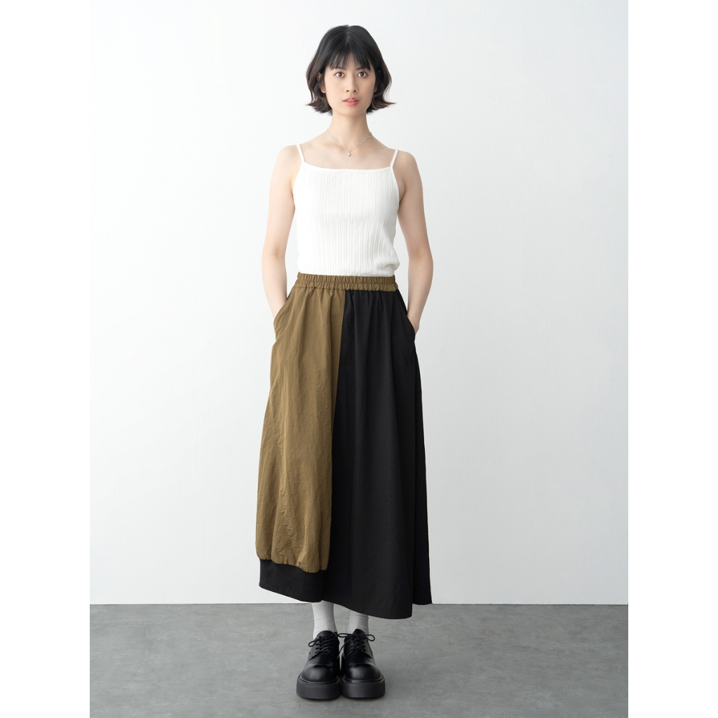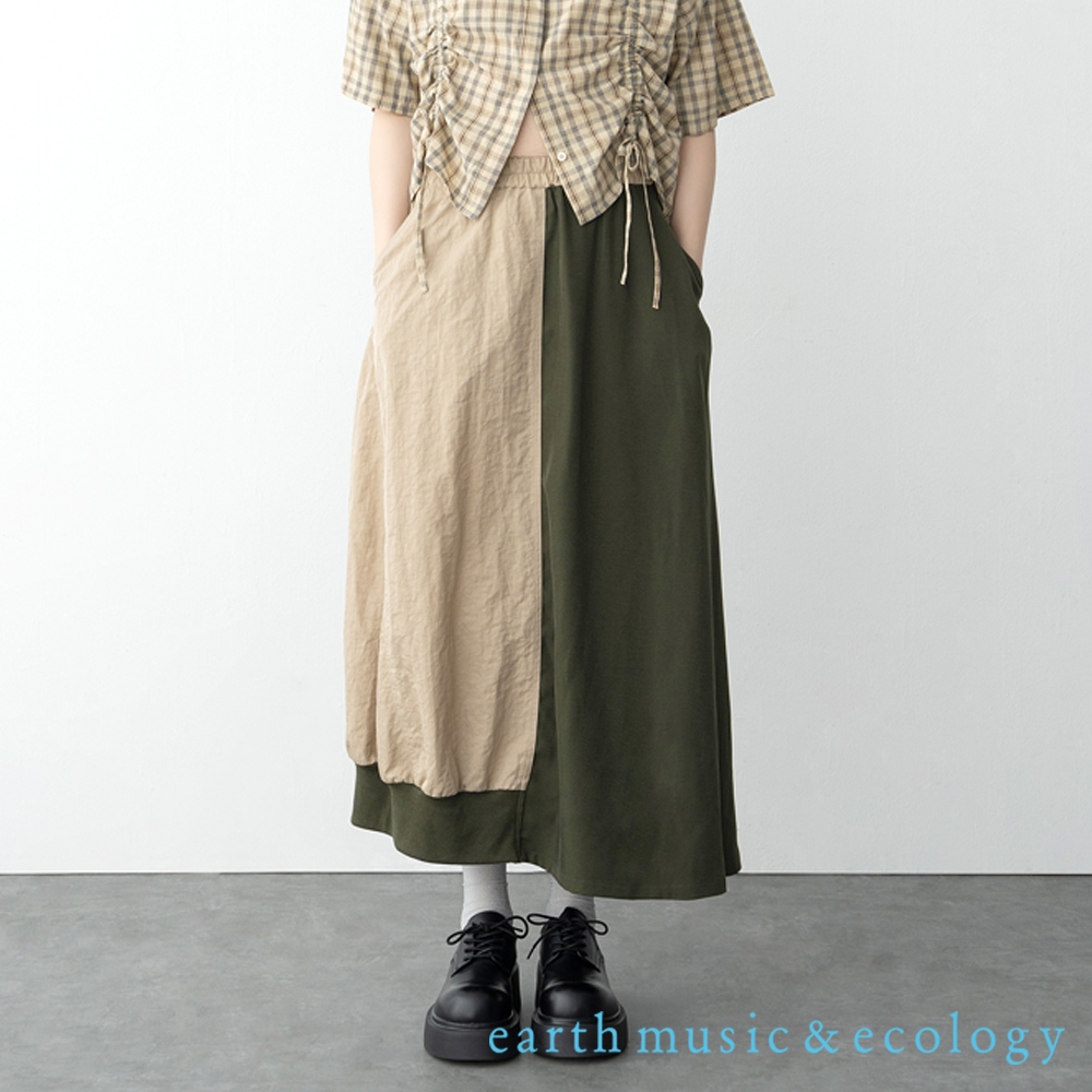 earth music&ecology 異素材拼接設計長裙(0S000002700)黑色F|綠色Fearth music&ecology Select Store