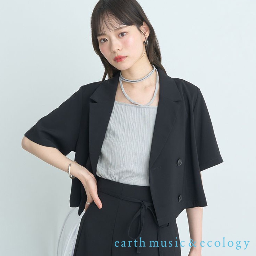 earth music&ecology 雙排釦短版西裝式剪裁短袖外套(01000041200)象牙色F|黑色F|淡青色FBlazersearth music&ecology Select Store