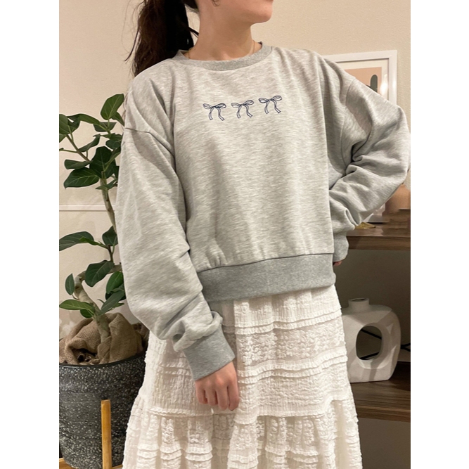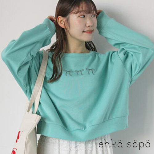 ehka sopo 甜美蝴蝶結刺繡短版休閒上衣(0F000479410)灰色F|薄荷綠F|深藍色F|淡紫色FT-shirtsearth music&ecology Select Store