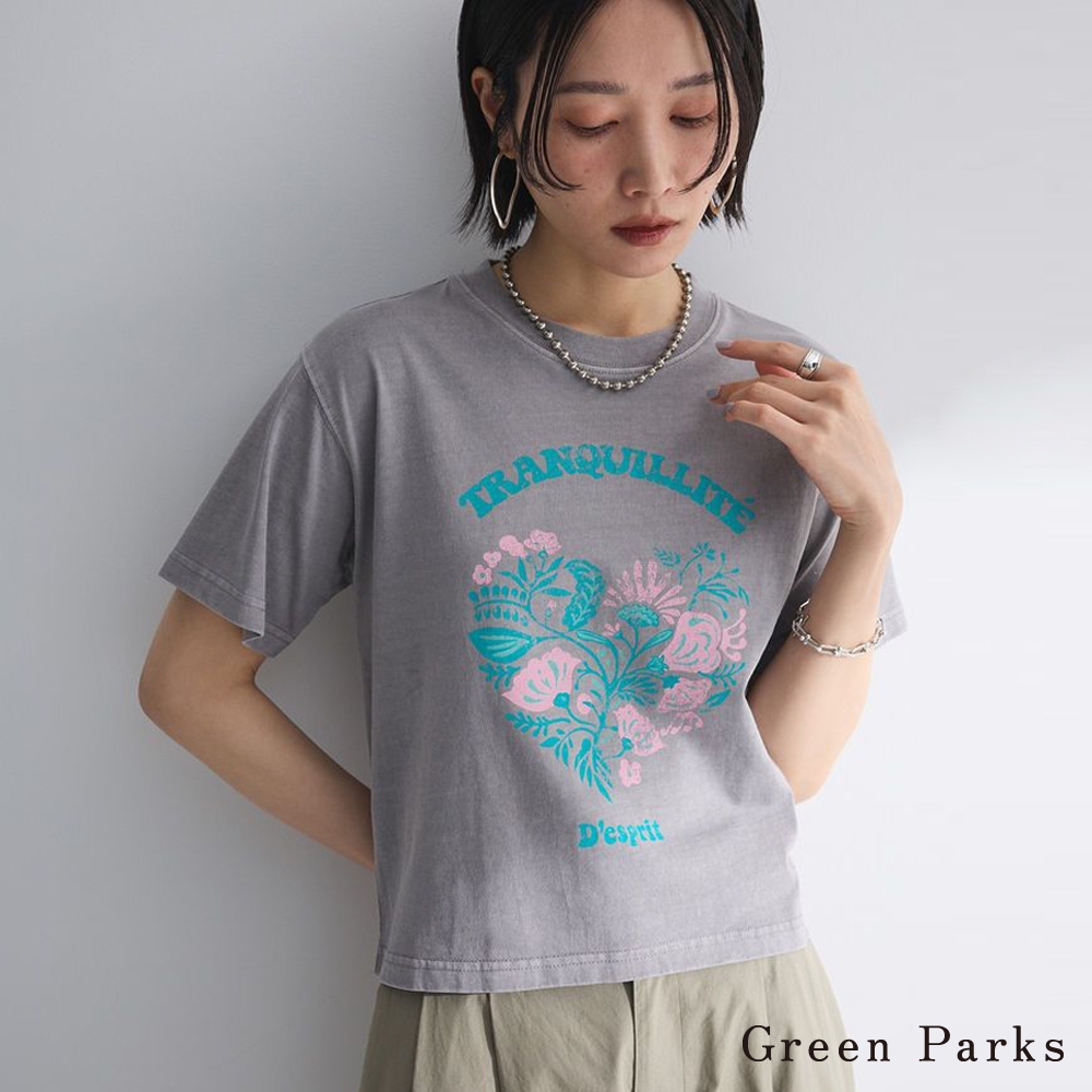 Green Parks 復古褪色感圖案打印短袖T恤(06000591300)深藍色F|本白F|灰色F|炭灰色FT-shirtsearth music&ecology Select Store