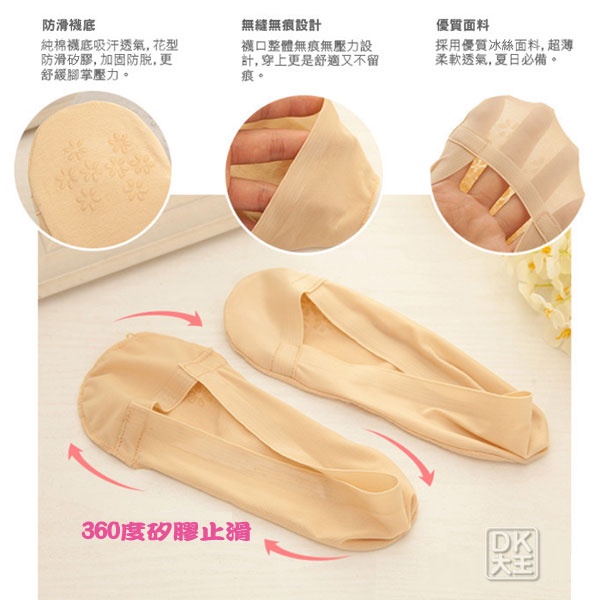韓式 360度冰絲矽膠止滑 隱形襪套 娃娃鞋必備襪子 韓國流行襪子【DK大王】黑色/1雙|灰色/1雙|膚色/1雙|粉色/1雙|白色/1雙SocksDK大王旗艦店
