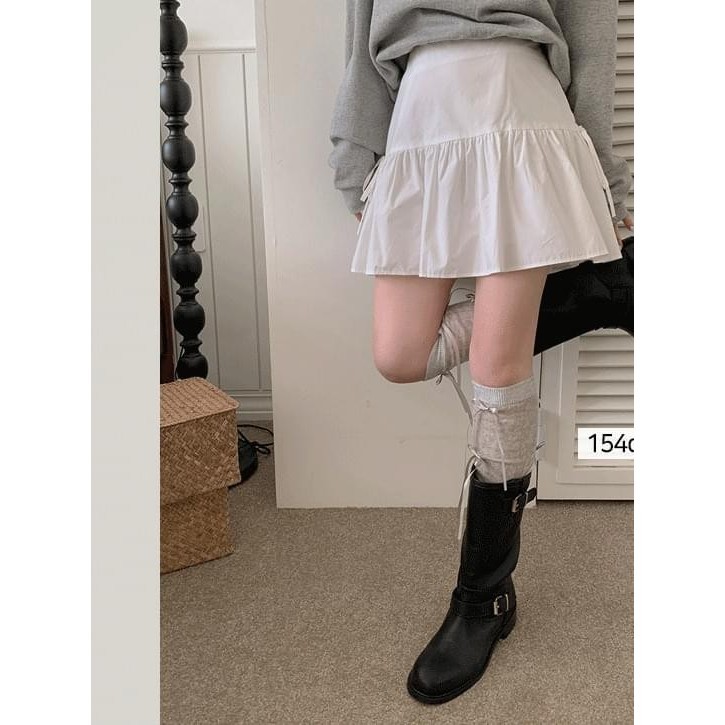 Codibook|韓國 Qnigirls 澎澎感綁帶蝴蝶結短裙[預購]裙子 荷葉邊裙 女裝象牙白-JH 著用|天空藍|黑色Codibook 韓國女裝購物平台