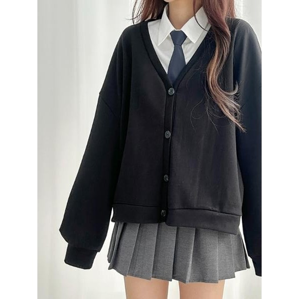 Codibook|韓國 BULLANG GIRL 純色V領寬鬆針織開衫[預購]針織外套 女裝灰色|海軍藍|黑色Winter Jackets & CoatsCodibook 韓國女裝購物平台