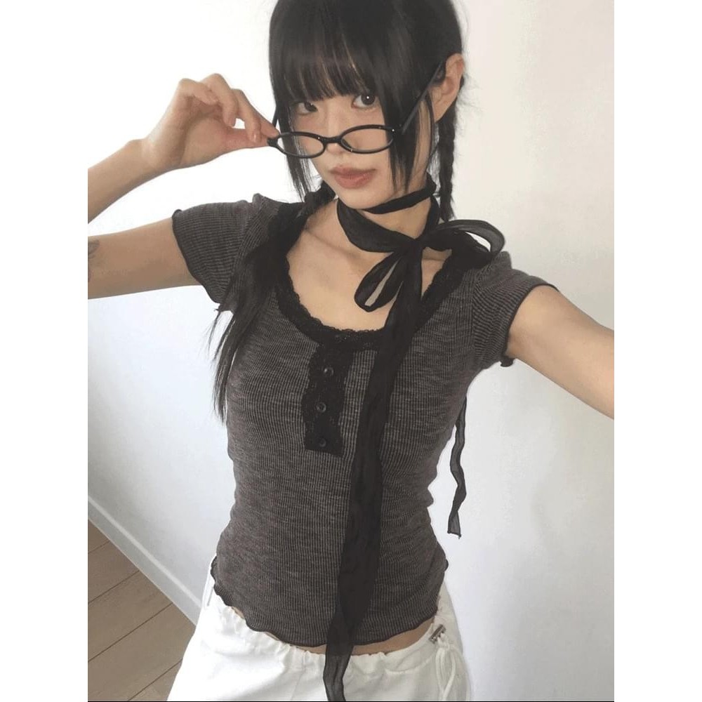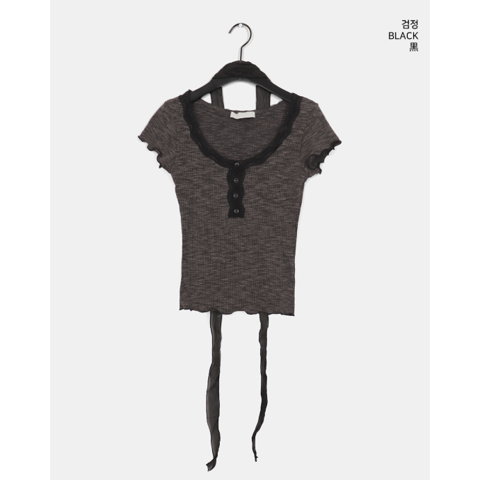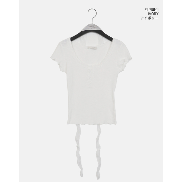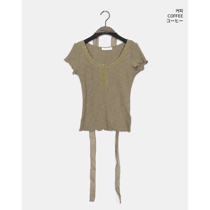 Codibook|韓國 wonderwonder U領蕾絲排扣短版T恤[預購]短袖上衣 T恤 女裝黑,FREE|象牙白,FREE|咖啡,FREE|藍色,FREET-shirtsCodibook 韓國女裝購物平台