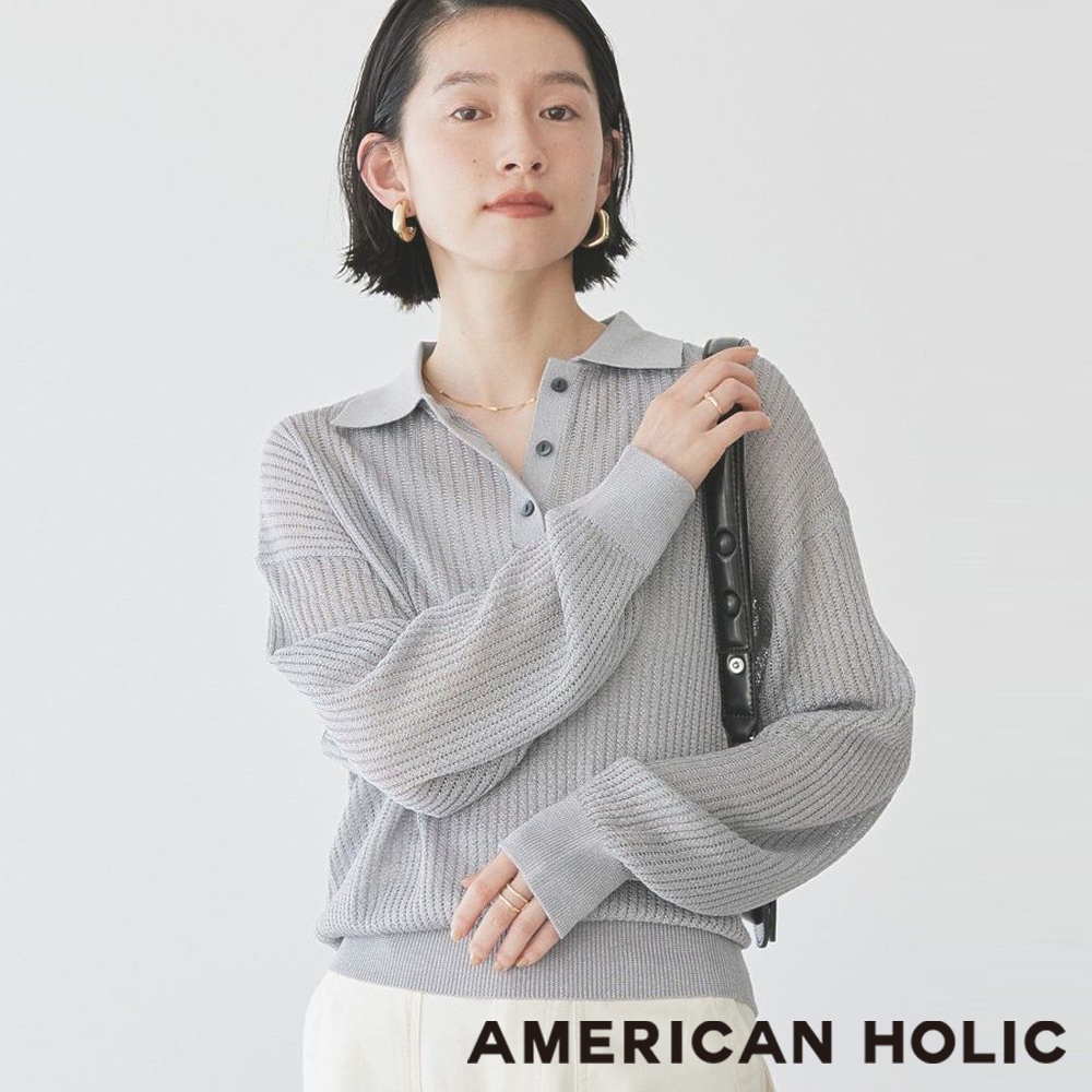 AMERICAN HOLIC 金屬光澤質感針織 Polo衫(HD51L2C0100)本白M|淡灰色M|黑色M|深藍色M|本白L|淡灰色L|黑色L|深藍色Learth music&ecology Select Store