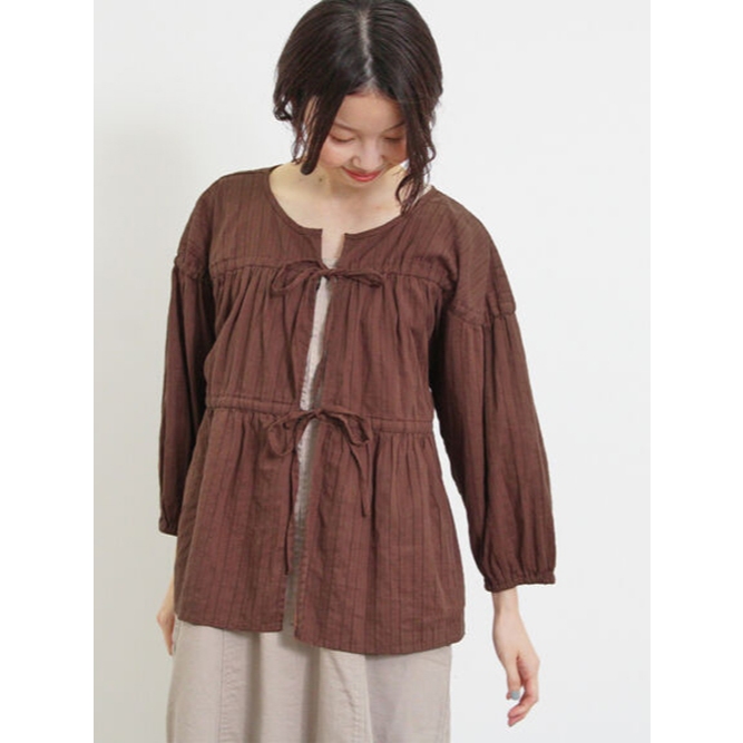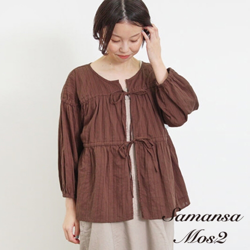 Samansa Mos2 甜美雙綁帶抽繩抓褶長袖襯衫(FB43L0A1680)本白F|炭灰色F|棕色F|藍色FShirts & Blousesearth music&ecology Select Store