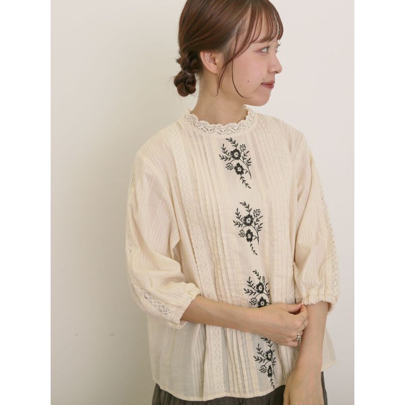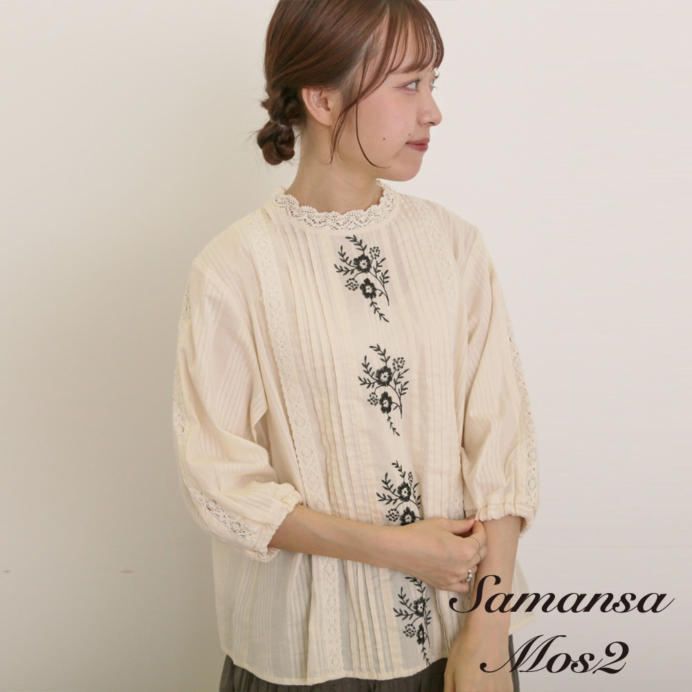 Samansa Mos2 精緻蕾絲花卉圖案刺繡後開釦襯衫(0F001032410)象牙色F|本白F|炭灰色F|粉紅色FShirts & Blousesearth music&ecology Select Store