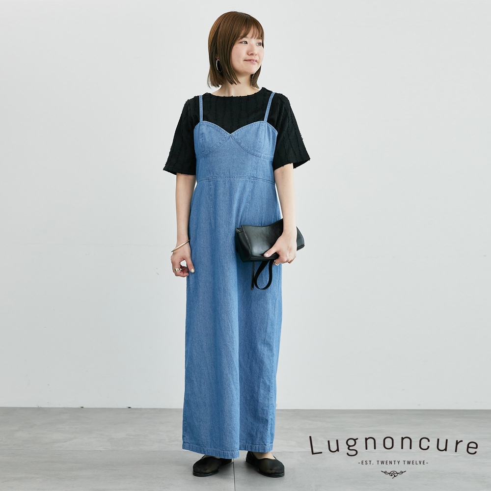 Lugnoncure 微辣低胸造型後拉鍊牛仔吊帶洋裝(0F000764910)藍色F|深藍色Fearth music&ecology Select Store
