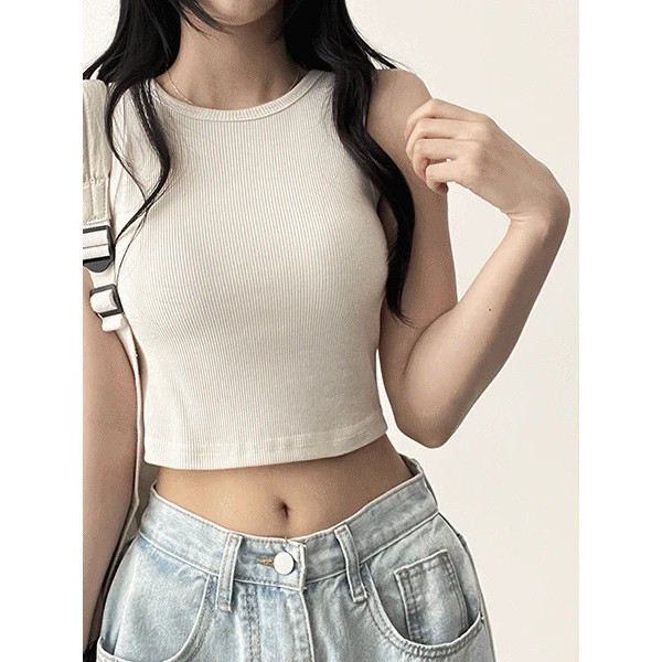 Codibook|韓國 HIJJOO 純色圓領窄版短版無袖背心[預購]無袖 T恤 女裝奶油色|白色|深灰色|黑色|灰色Tanks & CamisolesCodibook 韓國女裝購物平台