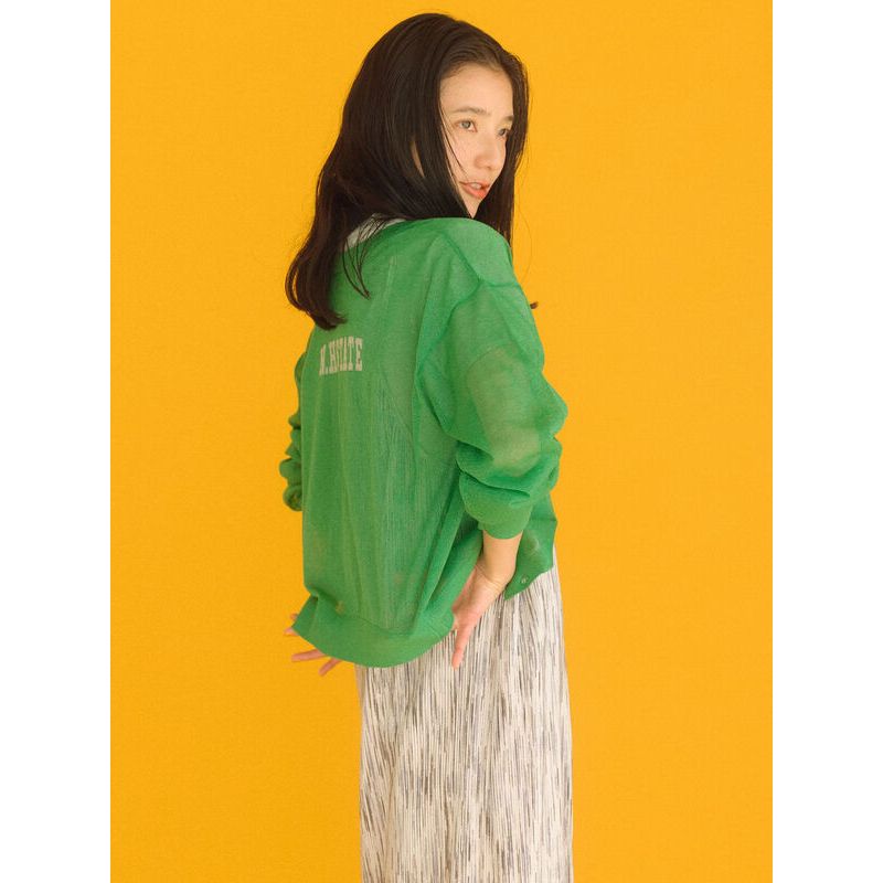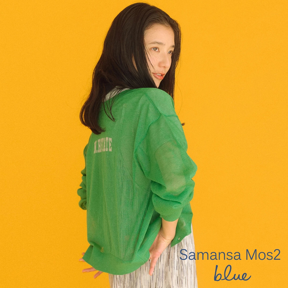 Samansa Mos2 blue 2WAY前後兩穿透明感英文針織圖案開襟罩衫(0F000772010)淡灰色F|灰色F|綠色FT-shirtsearth music&ecology Select Store