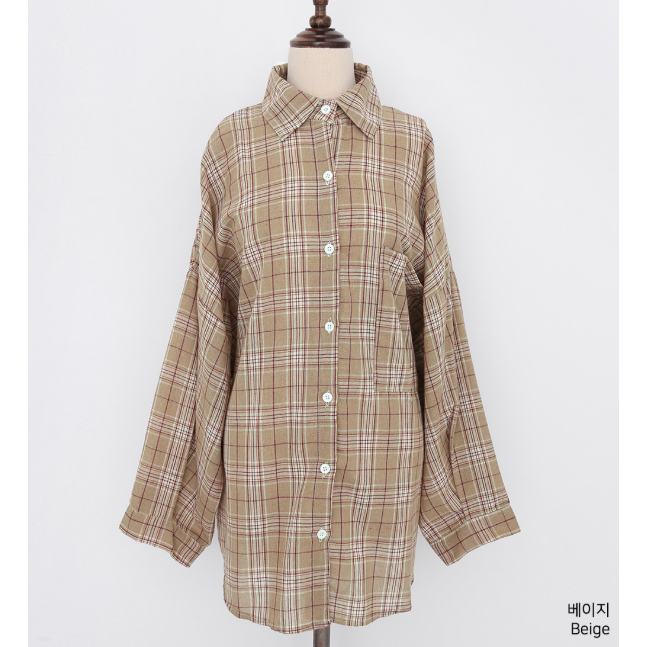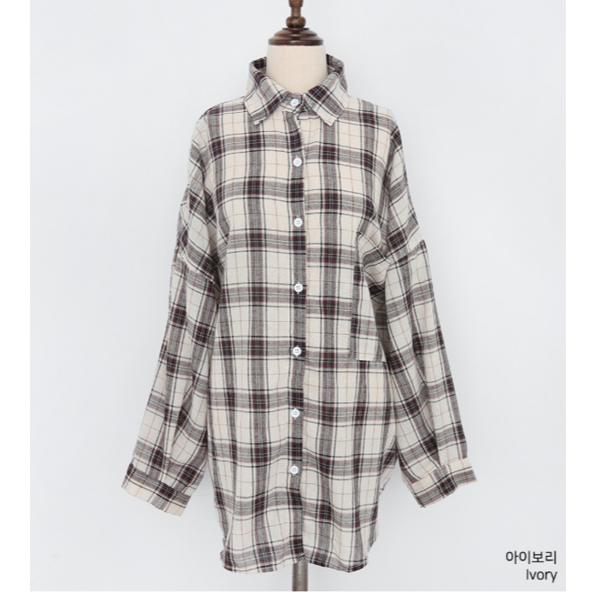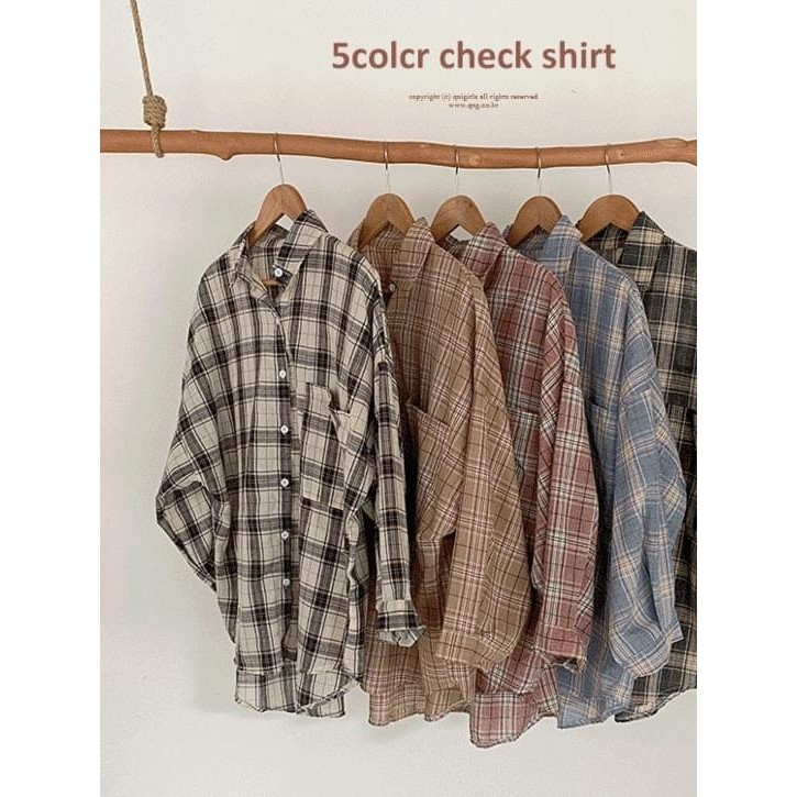 Codibook|韓國 Qnigirls 素雅格紋襯衫[預購]襯衫 雪紡襯衫 女裝米褐色|粉紅色|天空藍|灰色-Hye 著用|象牙白-Hye 著用Shirts & BlousesCodibook 韓國女裝購物平台