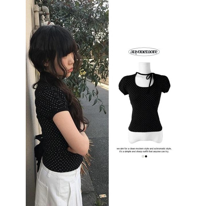 Codibook|韓國 anyonemore 點點短袖蝴蝶結澎袖T恤[預購]短袖上衣 T恤 女裝free,奶油色|free,黑色T-shirtsCodibook 韓國女裝購物平台