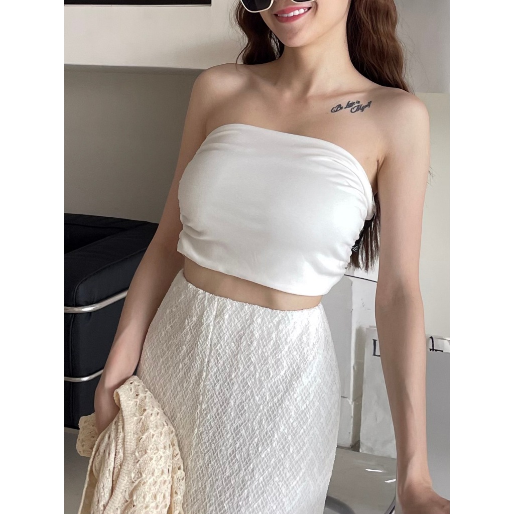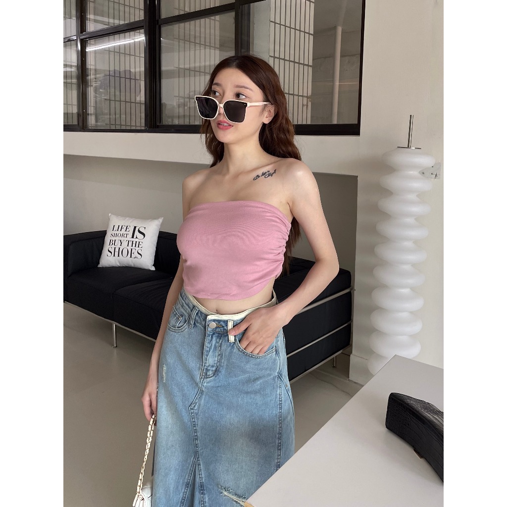 【DOEFF】 末代爾抓皺平口背心 背心女 抹胸 平口上衣 抹胸背心 顯胸 顯瘦黑|白|粉|杏|淺灰Tube TopsDOE.FF 朵伊芙
