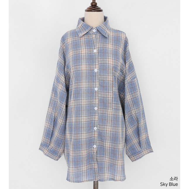 Codibook|韓國 VANHECER 天空藍寬鬆格紋長版襯衫[預購]襯衫 襯衫洋裝 女裝藍色,FREEShirts & BlousesCodibook 韓國女裝購物平台