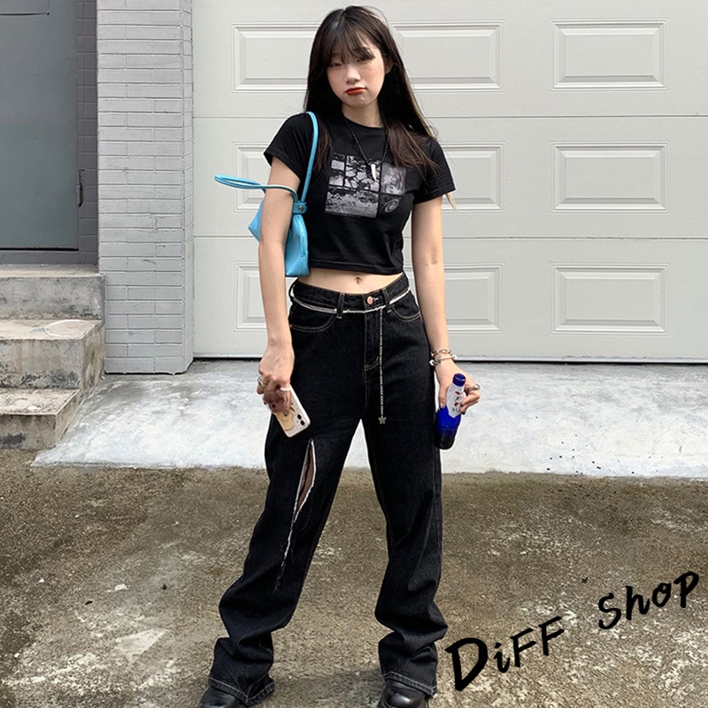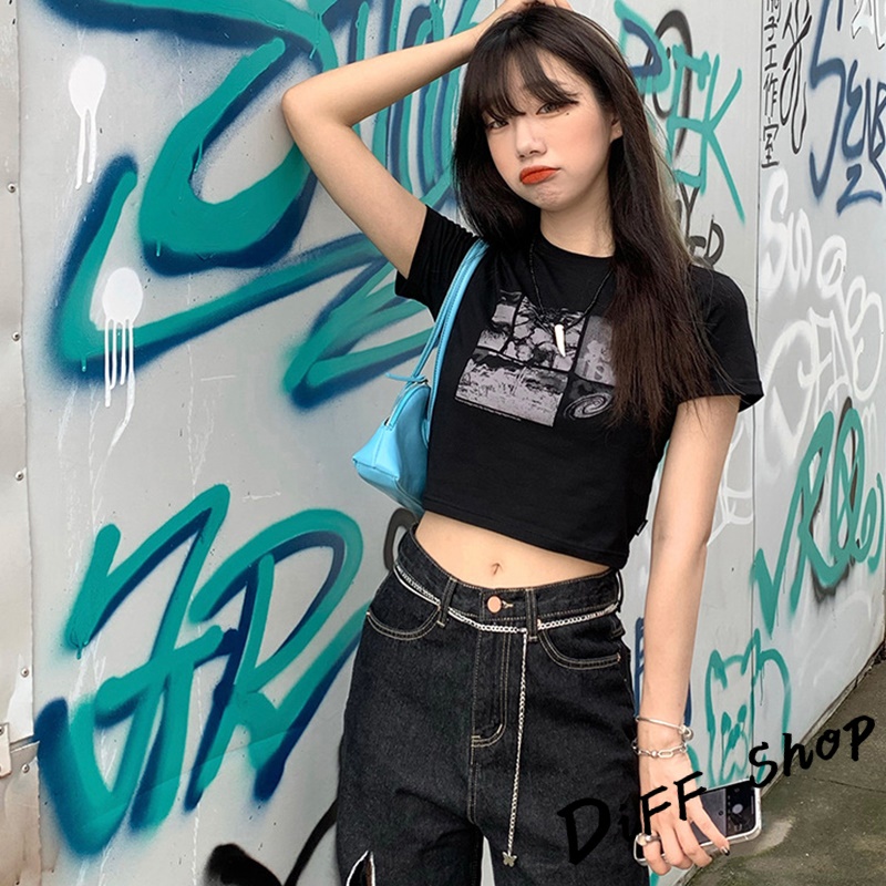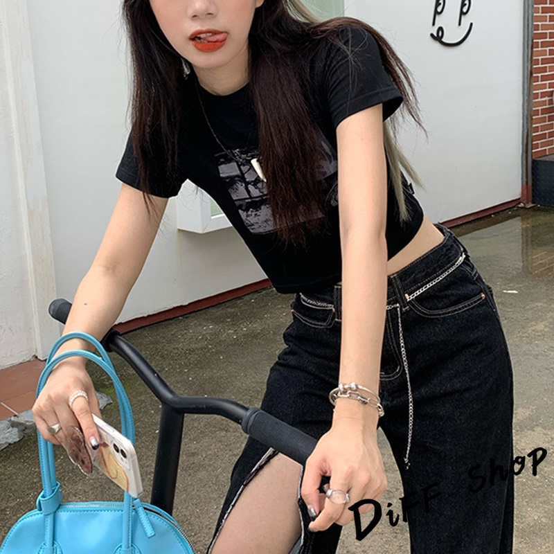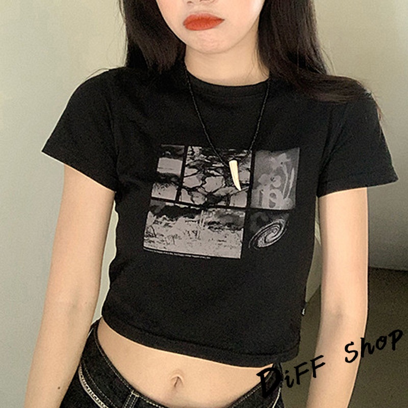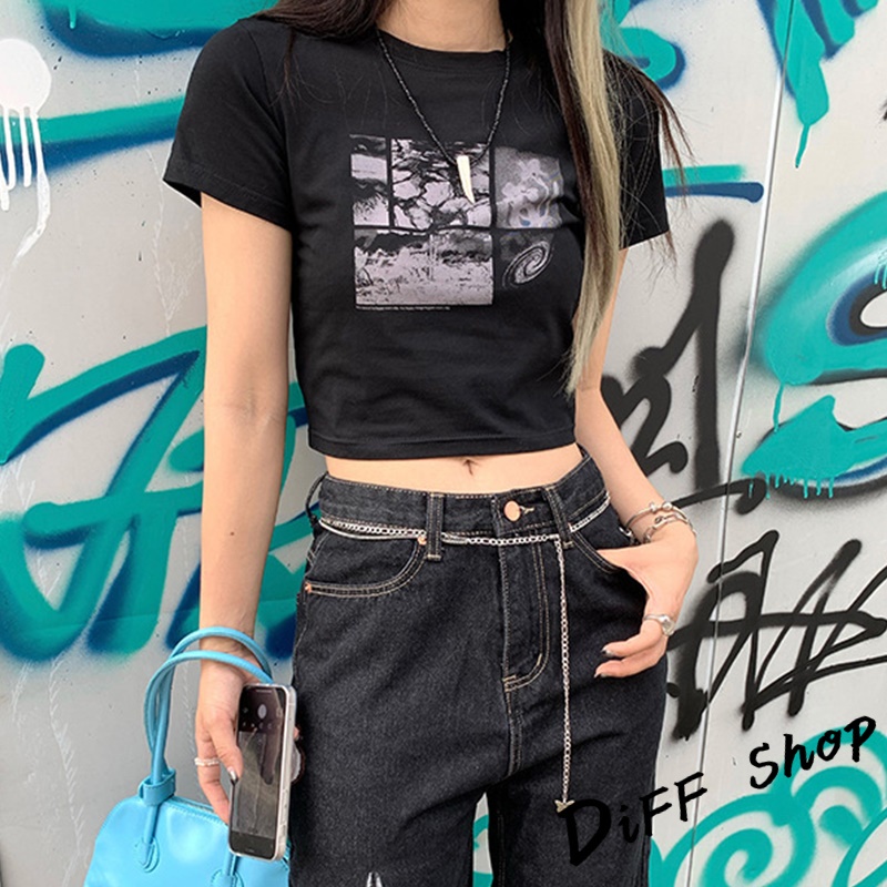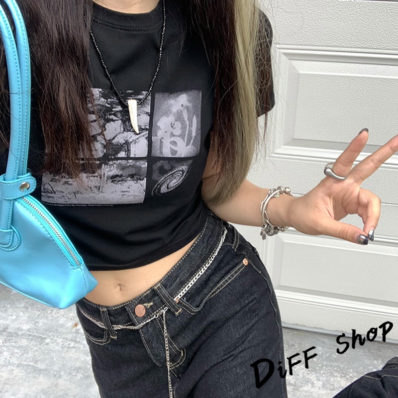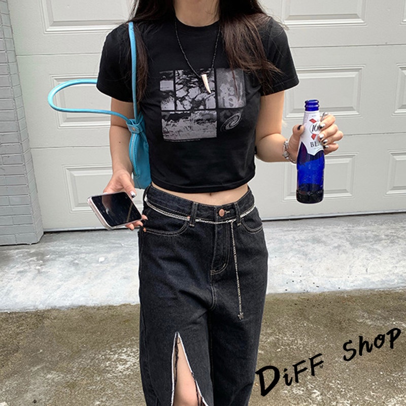 【DIFF】韓版彈性緊身圖案短版上衣 短袖上衣 短袖t恤 女裝 顯瘦上衣 衣服 寬鬆上衣 素T 短板上衣【T436】【T436】黑色T-shirtsDiFF shop