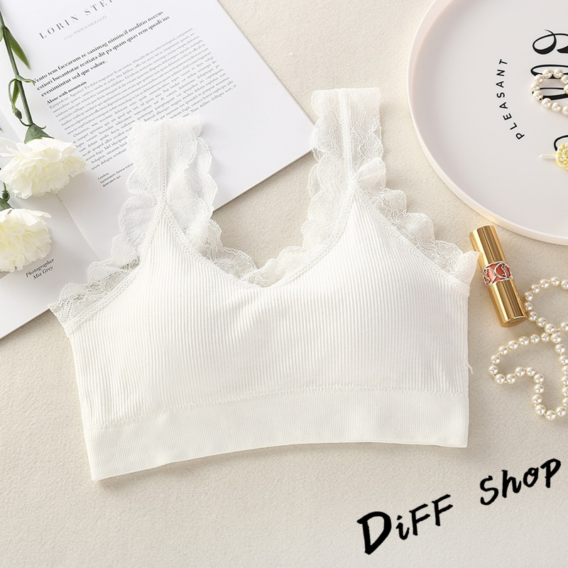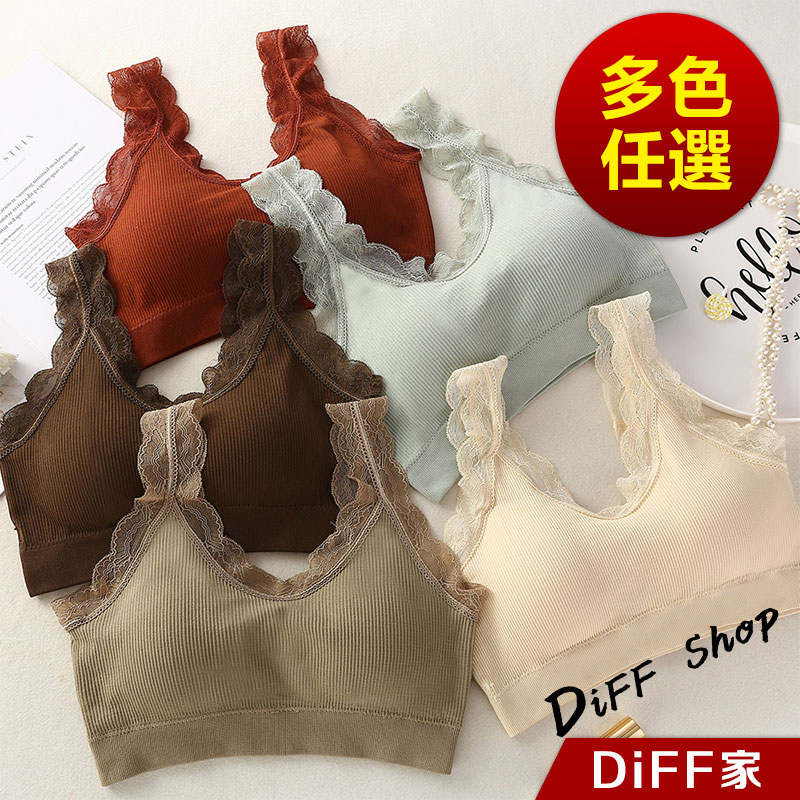 【DIFF】韓版性感蕾絲邊小可愛 帶胸墊免穿內衣 吊帶背心 上衣 細肩帶背心 無鋼圈 運動內衣【V79】
