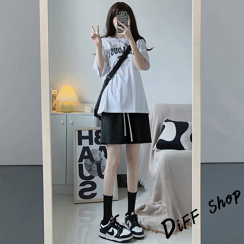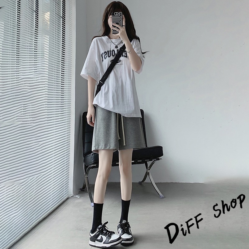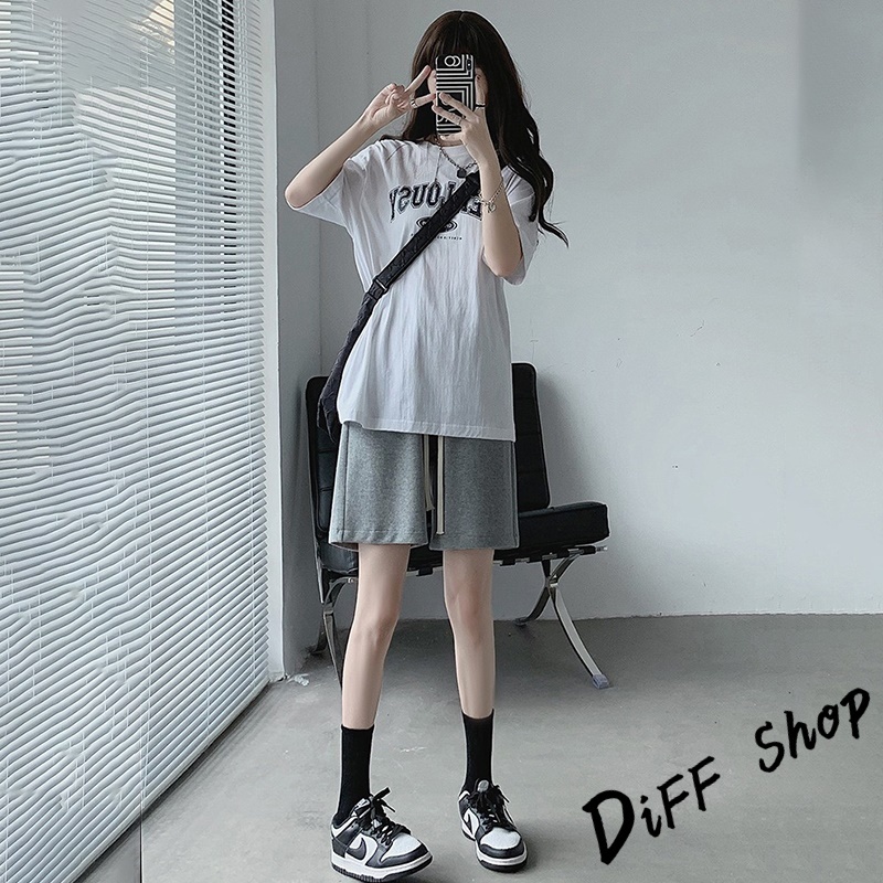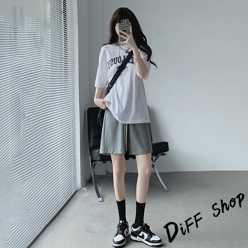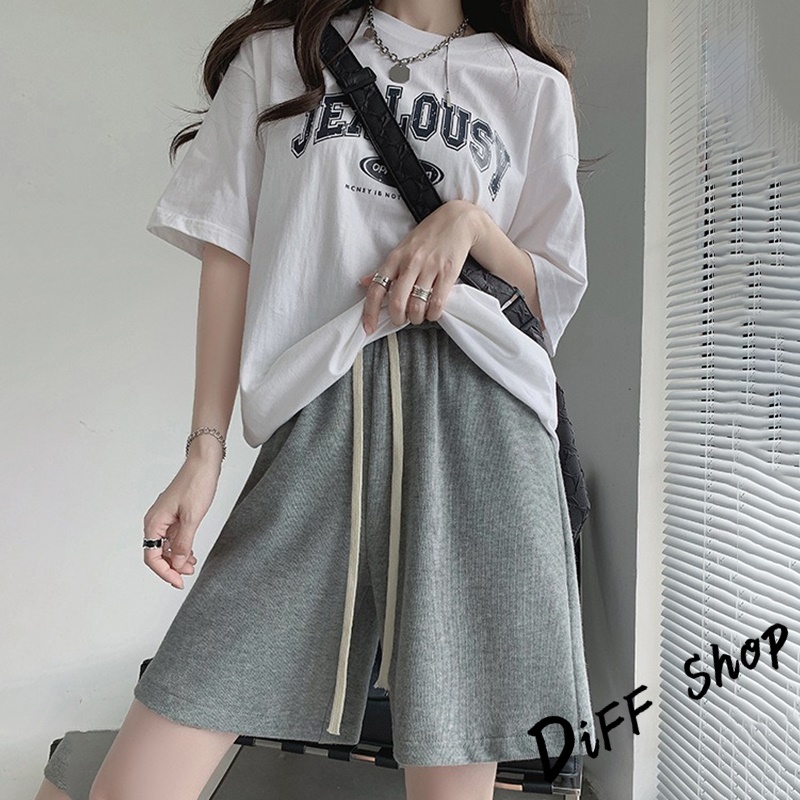 【DIFF】韓版薄款寬鬆直筒灰色運動短褲 休閒褲 短褲 褲子 運動短褲 女裝 休閒短褲 寬褲 運動褲 睡褲【P383】【P383】淺灰色|【P383】黑色ShortsDiFF shop