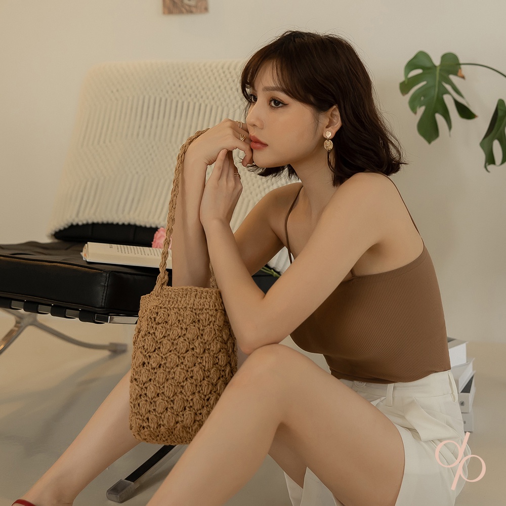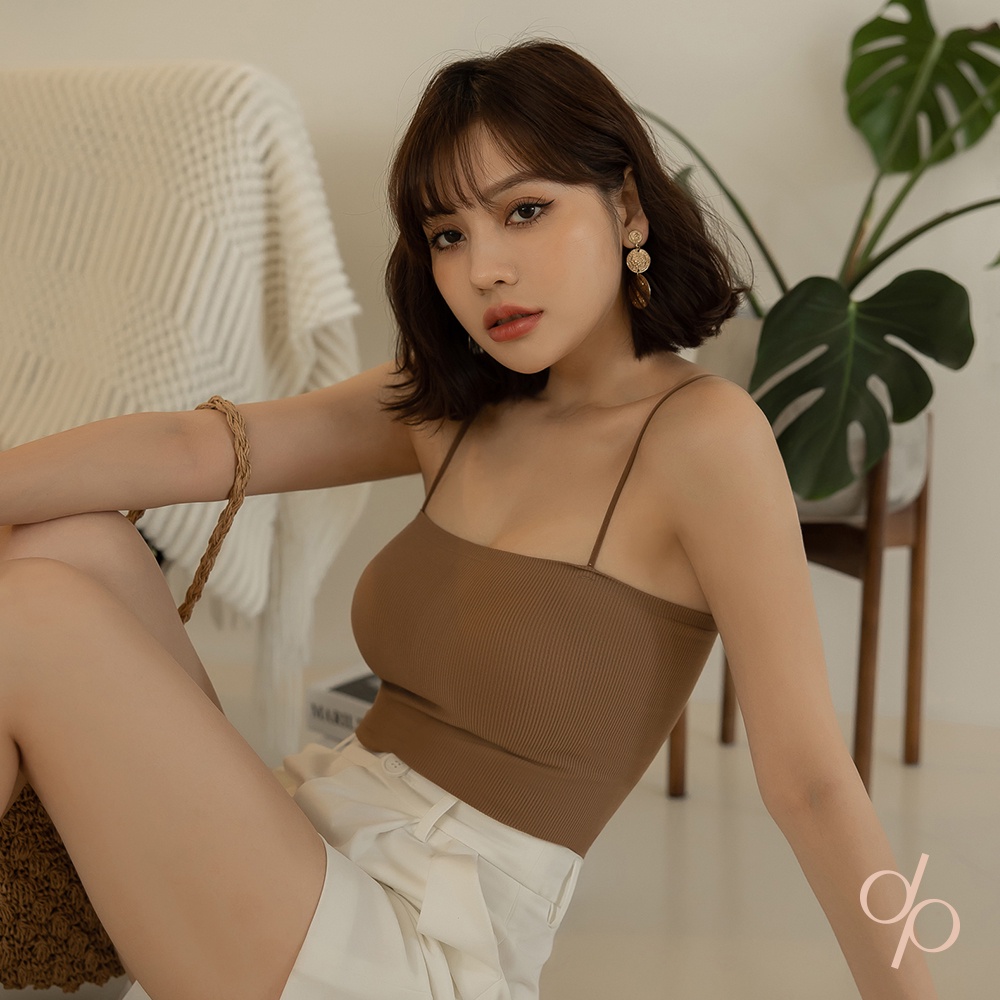 • 【DEPIC】百搭細肩螺紋平口胸墊小可愛 (焦糖)|dp select