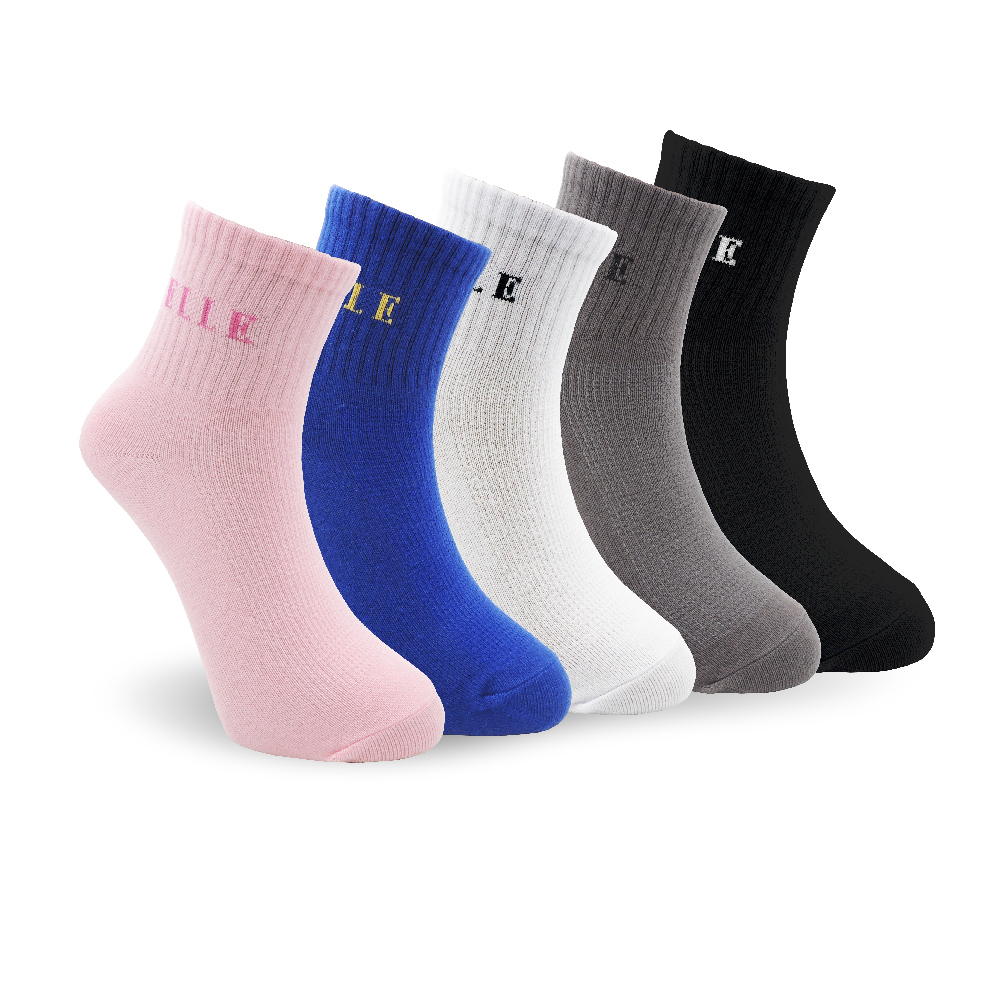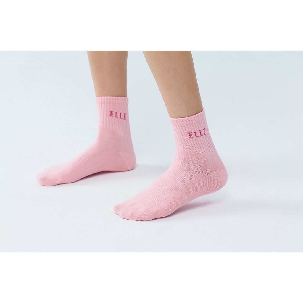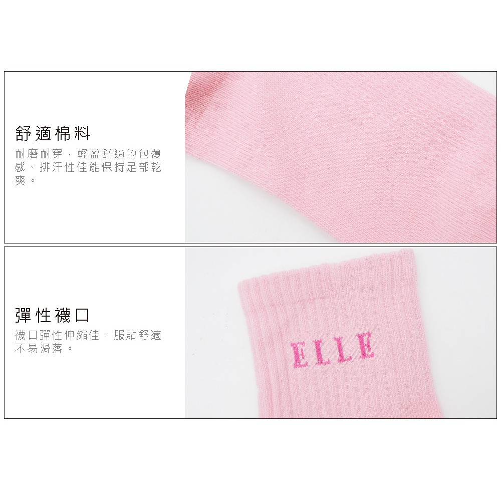 【ELLE】 簡約素色學生襪 襪子 少女襪 棉襪 中筒襪 休閒襪 女襪中灰|黑|粉紅|藍|白SocksELLE 襪子男內 官方旗艦店