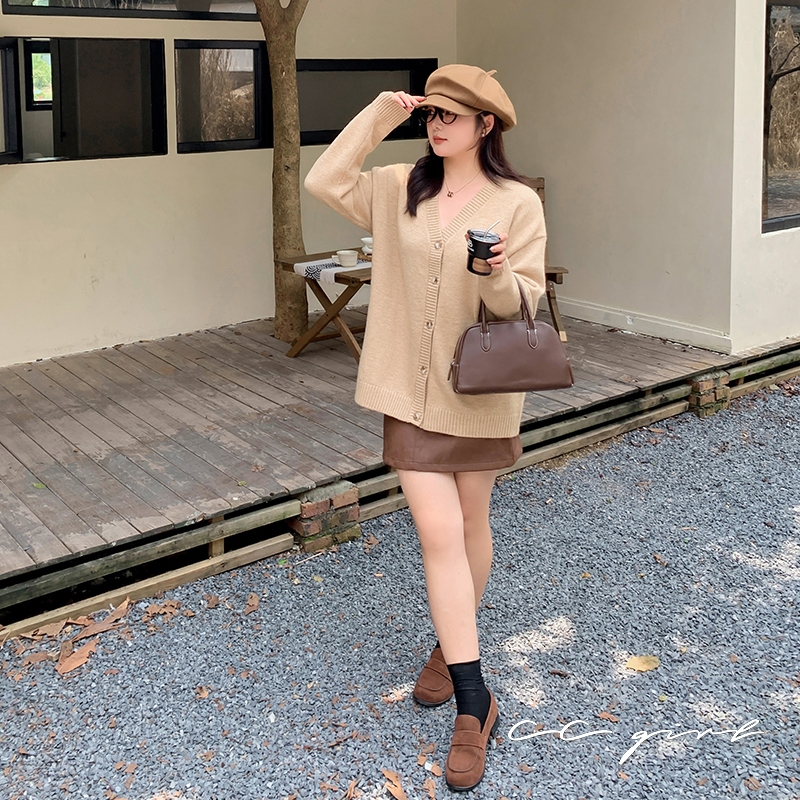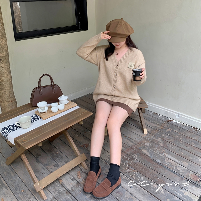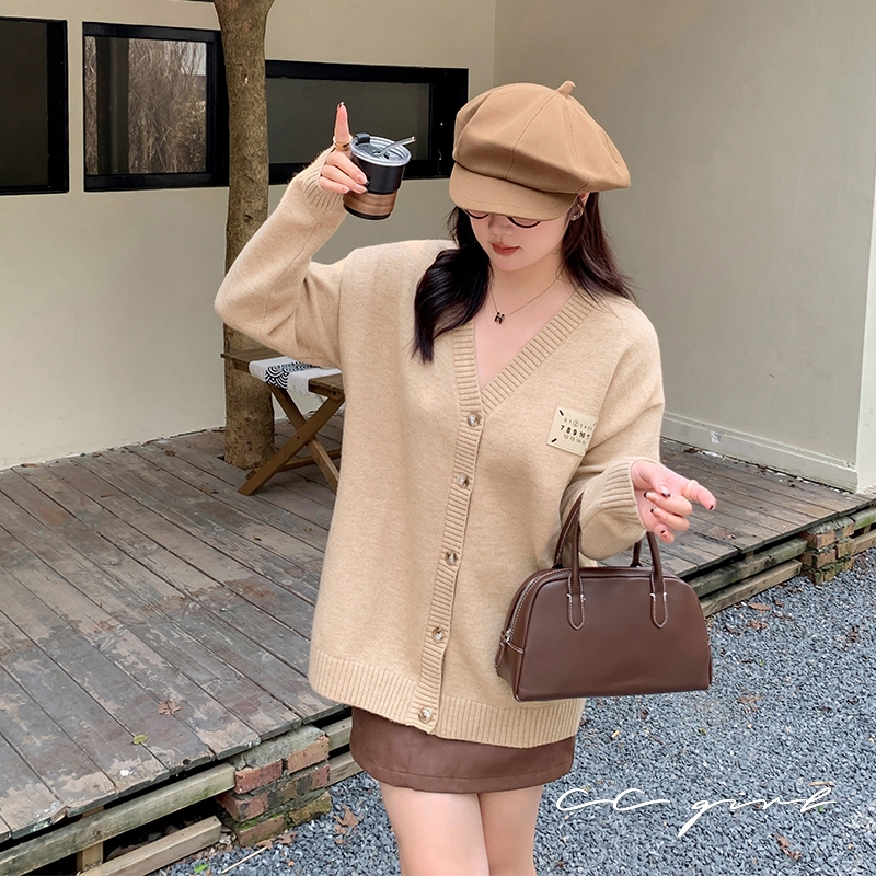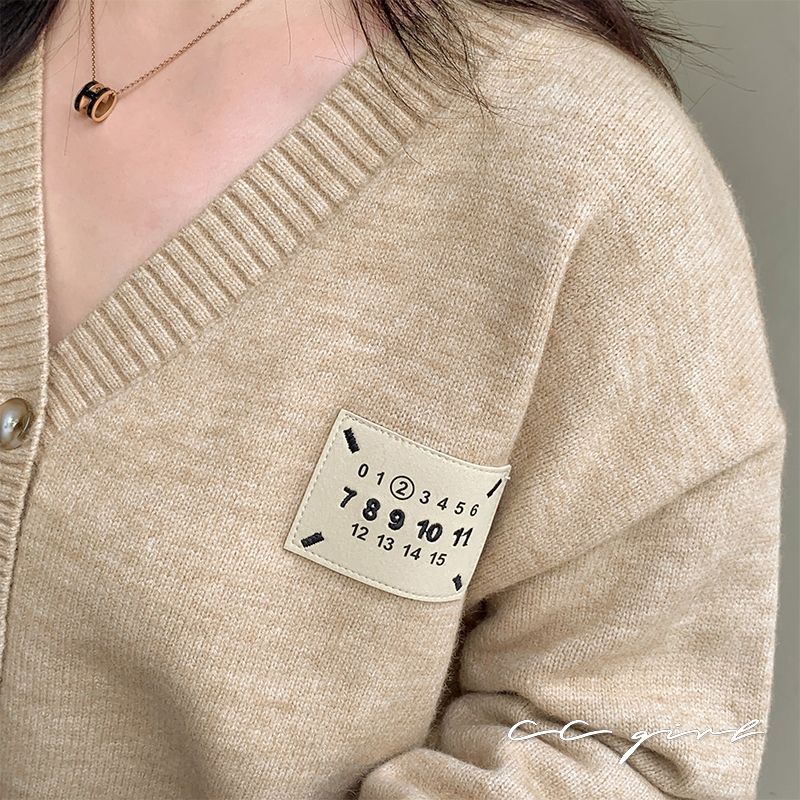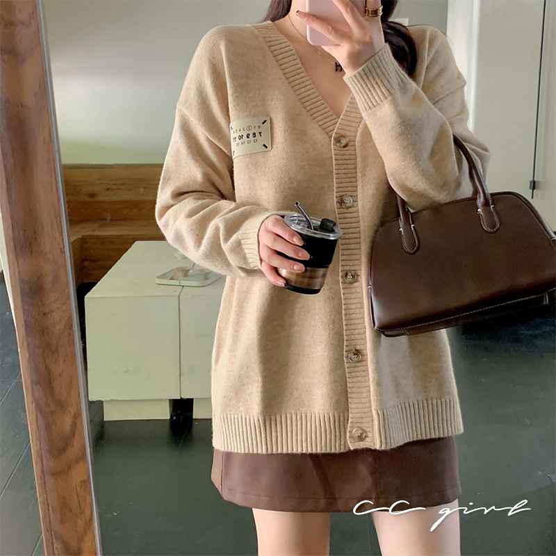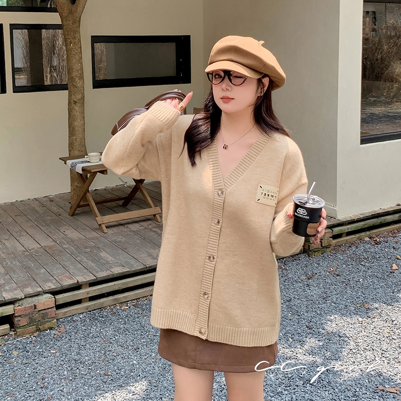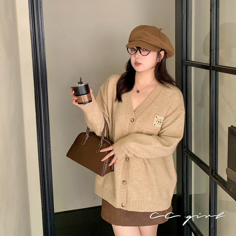 CCGIRL中大尺碼 數字標籤造型♡溫柔軟糯慵懶感保暖坑條針織毛衣外套-適L~4L《20708》大尺碼女裝 中大尺碼外套