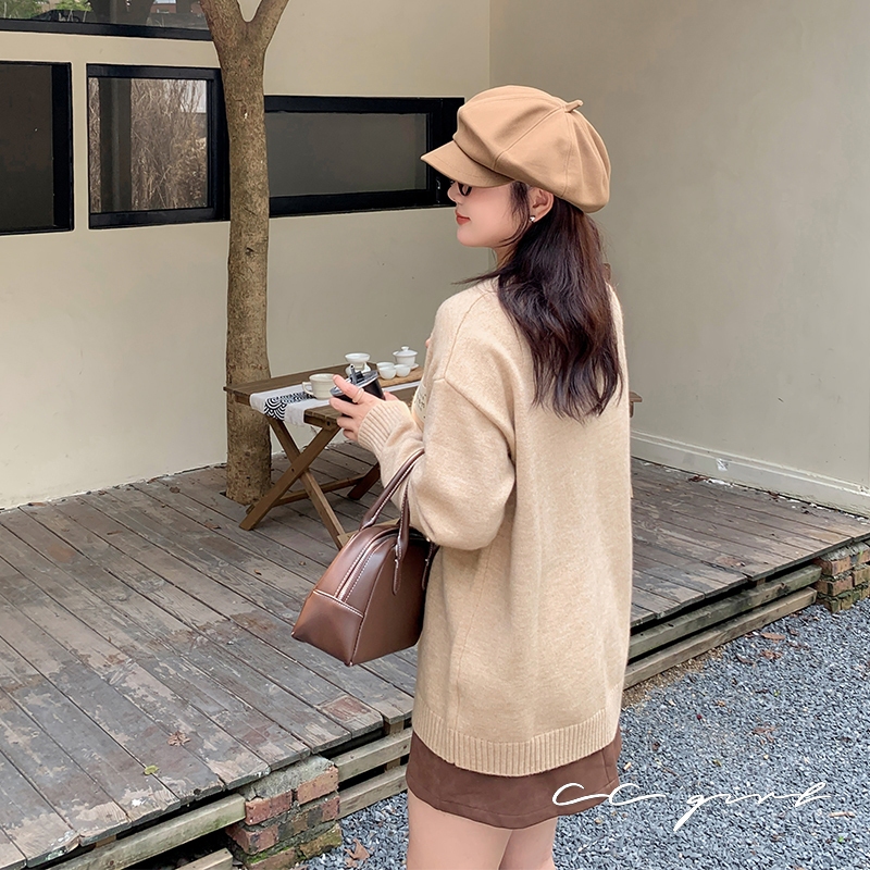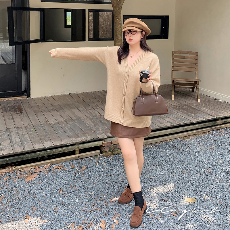 • CCGIRL中大尺碼 數字標籤造型♡溫柔軟糯慵懶感保暖坑條針織毛衣外套-適L~4L《20708》大尺碼女裝 中大尺碼外套