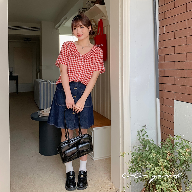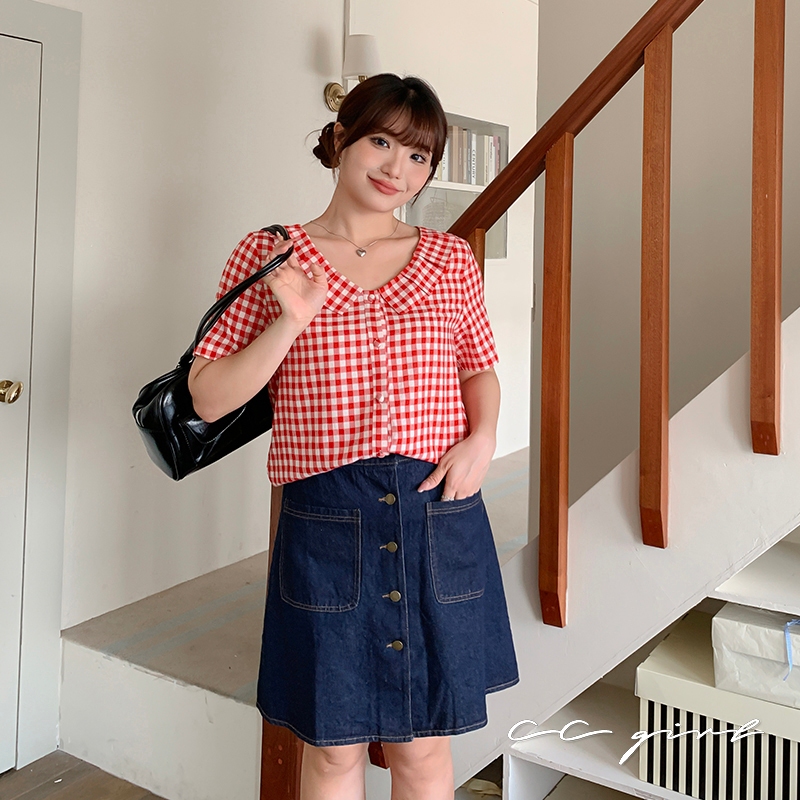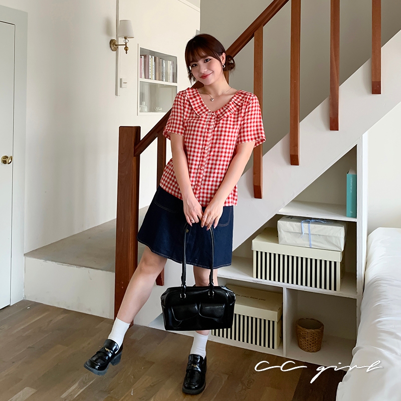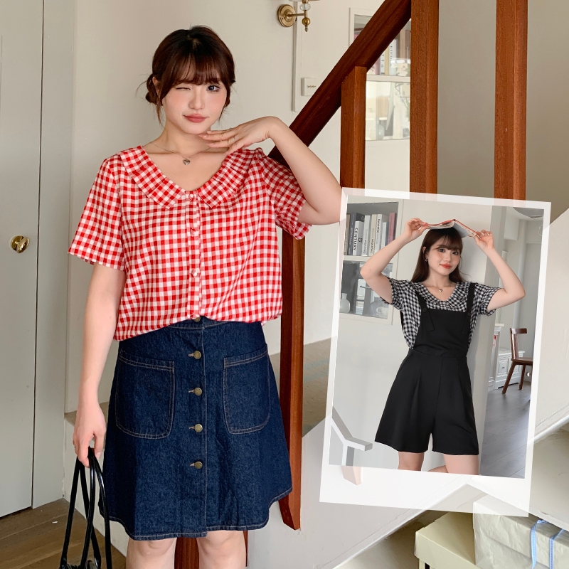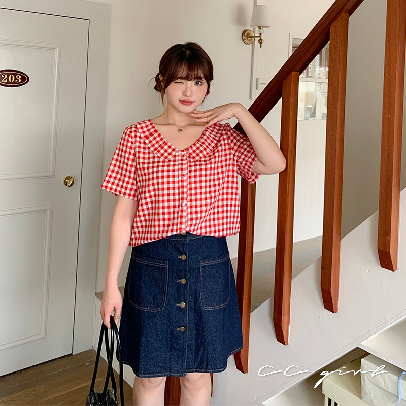 CCCGIRL中大尺碼 古錐淘氣格子翻領襯衫短袖上衣(可開釦)-共2色-適L~5L《32089》大尺碼女裝 中大尺碼襯衫翻領紅格紋,L|翻領紅格紋,XL|翻領紅格紋,2L|翻領紅格紋,3L|翻領紅格紋,4L|翻領紅格紋,5L|翻領黑格紋,L|翻領黑格紋,XL|翻領黑格紋,2L|翻領黑格紋,3L|翻領黑格紋,4L|翻領黑格紋,5LShirts & BlousesCCGIRL中大尺碼女裝