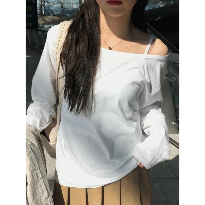 Codibook|韓國 MANDARINE TREE 輕鬆慵懶單肩露肩寬鬆長袖T恤[預購]長袖上衣 T恤 女裝白色,FREE|咖啡色,FREE|深灰色,FREE|灰色,FREE|黑色,FREET-shirtsCodibook 韓國女裝購物平台