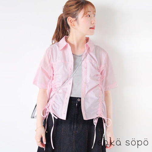 ehka sopo 特殊雙抽繩翻領短袖襯衫(FF46L0A1180)粉紅色F|黃色F|淡青色F|本白FShirts & Blousesearth music&ecology Select Store
