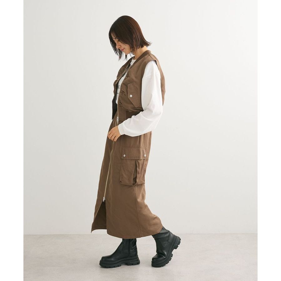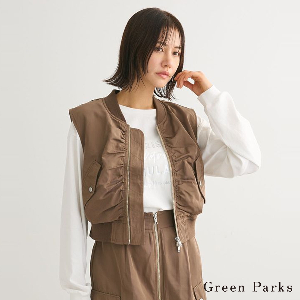 Green Parks 褶皺剪裁雙口袋拉鍊MA-1背心(6P43L0X0300)黑色F|葡萄酒色F|棕色F|卡其色FVestsearth music&ecology Select Store