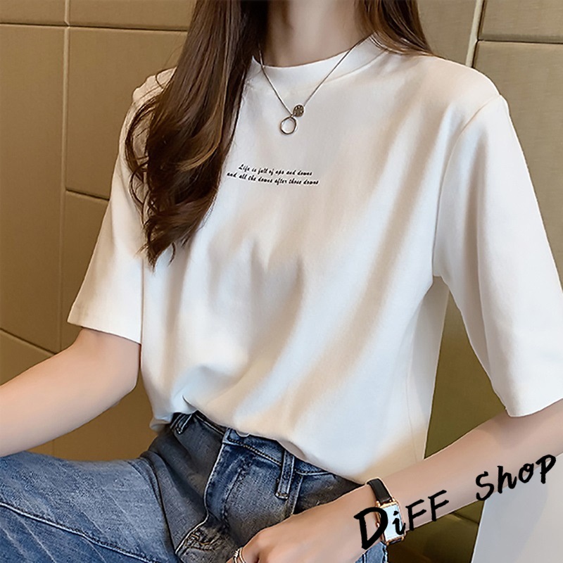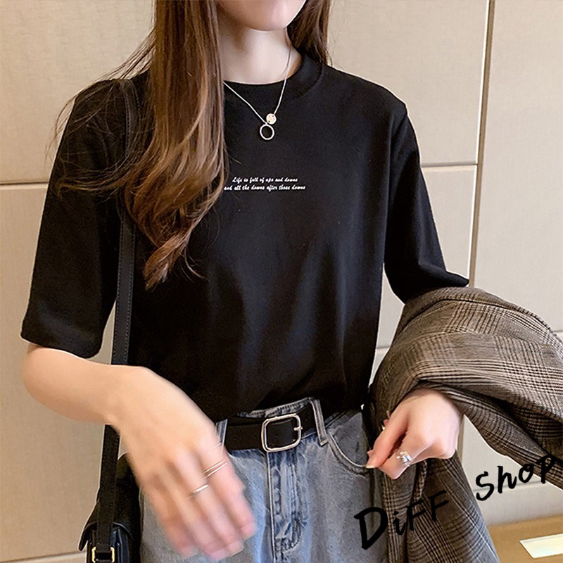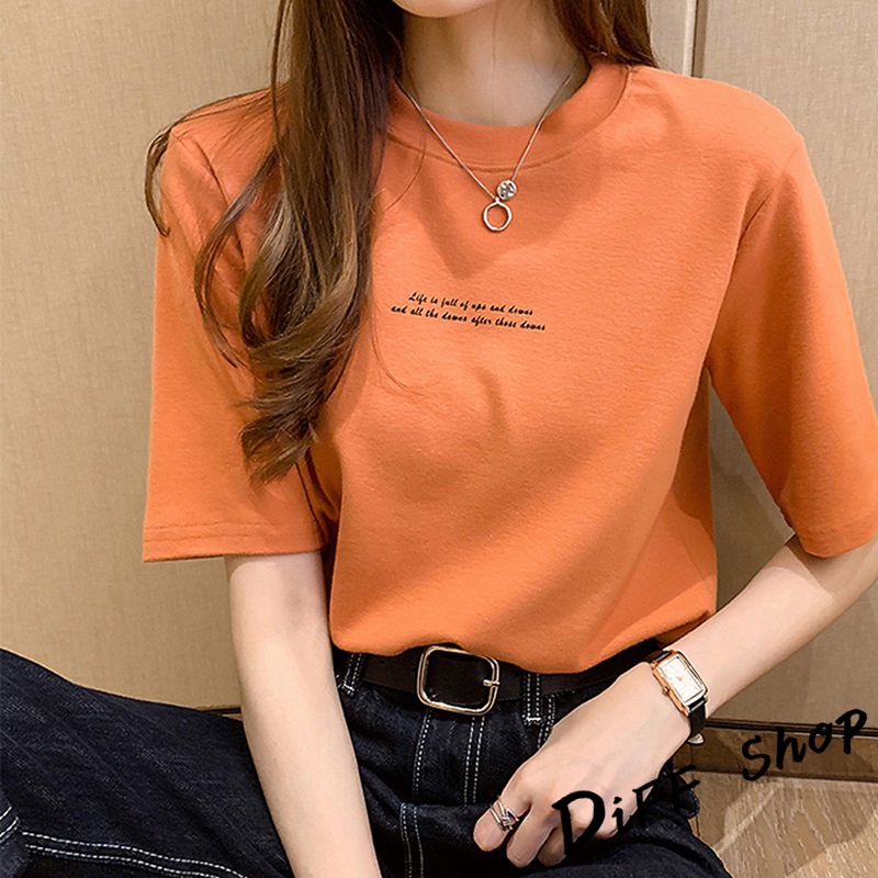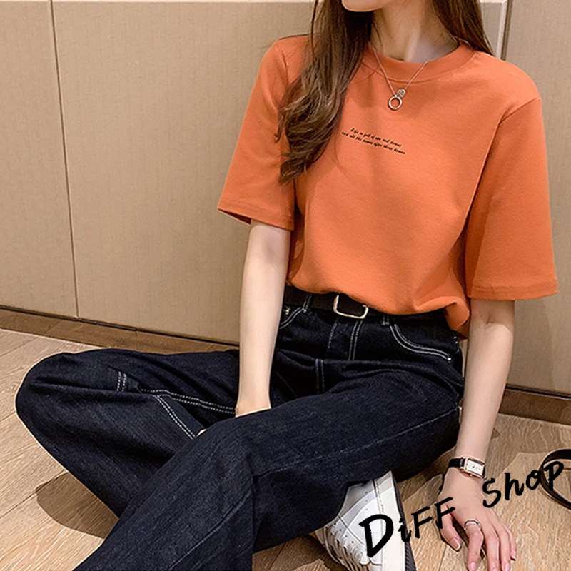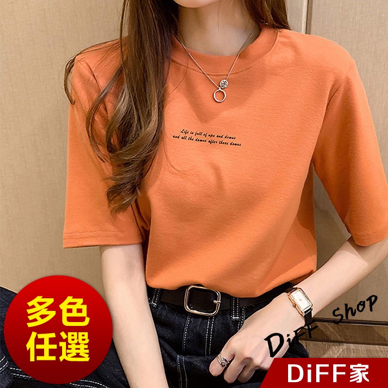 【DIFF】韓版寬鬆字母圓領短袖上衣 短袖t恤 女裝 顯瘦上衣 衣服 寬鬆上衣 素T【T431】【T431】黑色|【T431】白色|【T431】橘色|【T431】墨綠色T-shirtsDiFF shop