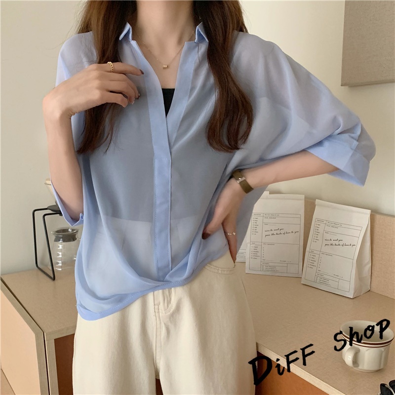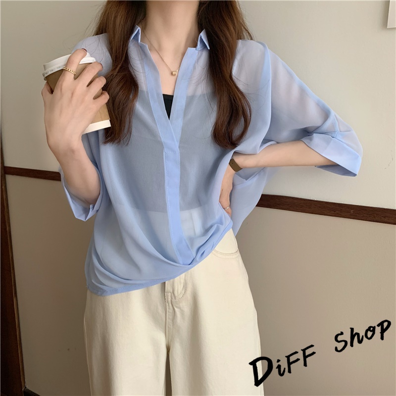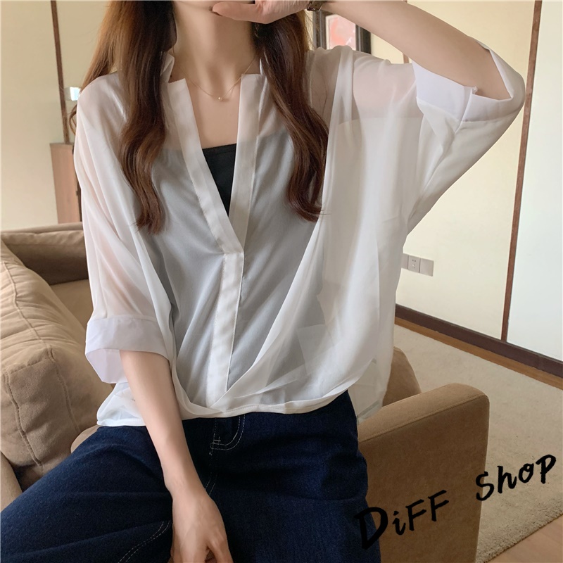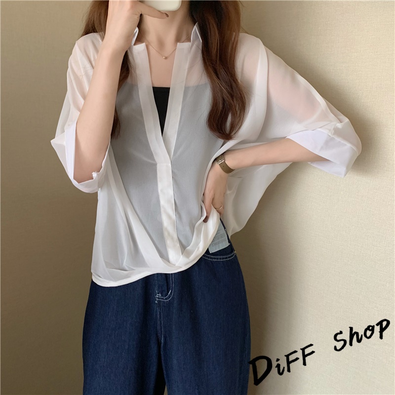 【DIFF】韓版雪紡顯瘦蝙蝠袖襯衫+背心 套裝 短袖上衣 短袖t恤 女裝 顯瘦上衣 衣服 寬鬆上衣 防曬上衣【S182】